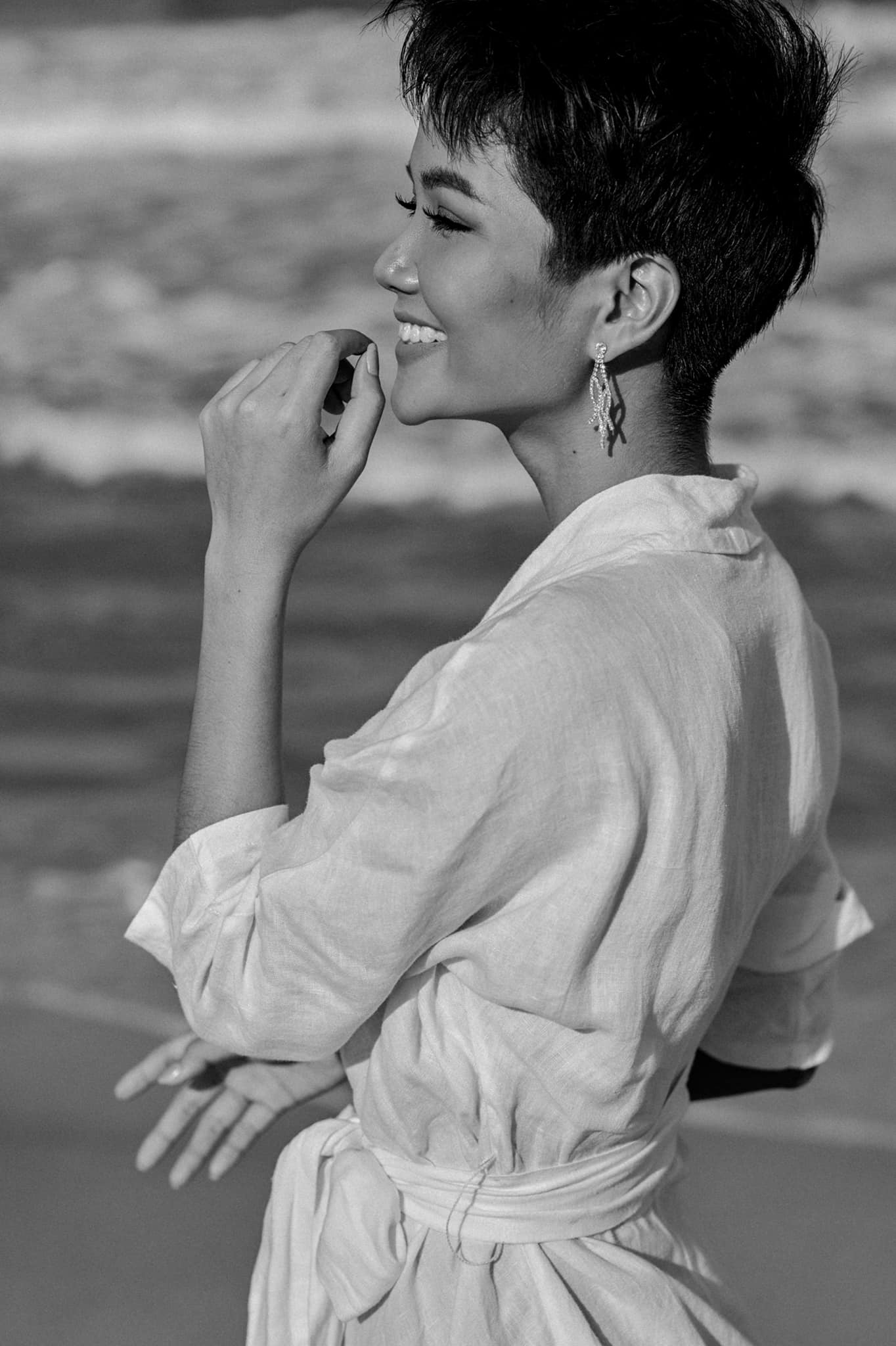 Trình làng bộ ảnh mới bên bờ biển, chọn tông màu đơn giản nhất: Đen - trắng, H'Hen Niê khoe trọn vẻ đẹp trong trẻo, “hút hồn” của mình dù không đậm đà son phấn hay trang phục cầu kỳ.