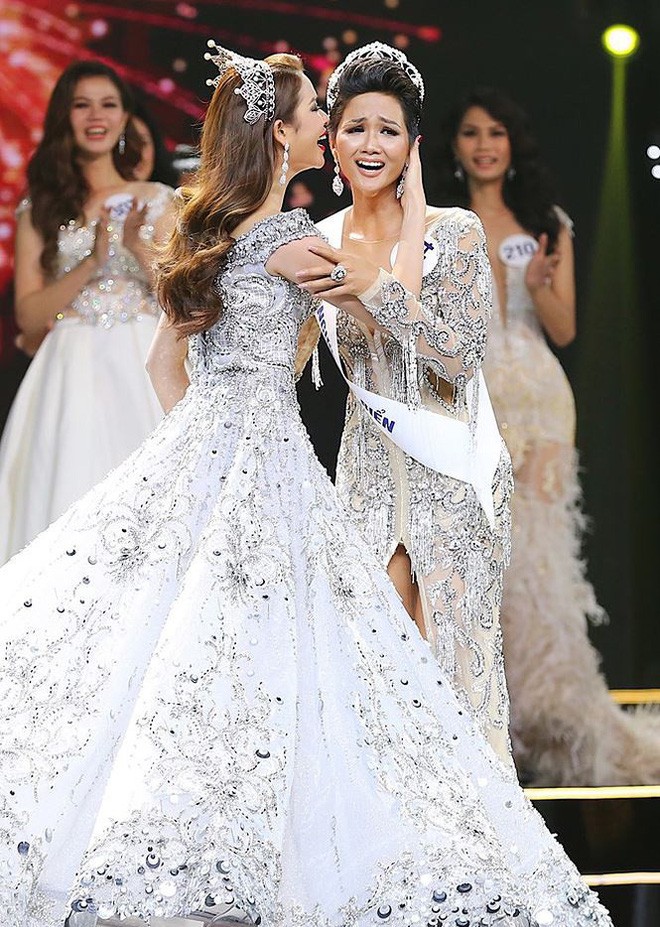 Chiếc váy của Phạm Hương được mọi người nhận xét có phần lấn át H”Hen Niê trong đêm chung kết Hoa hậu Hoàn vũ Việt Nam.
