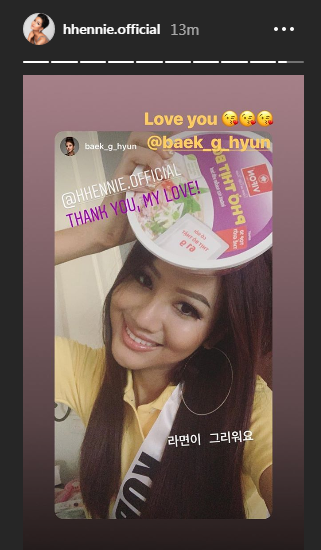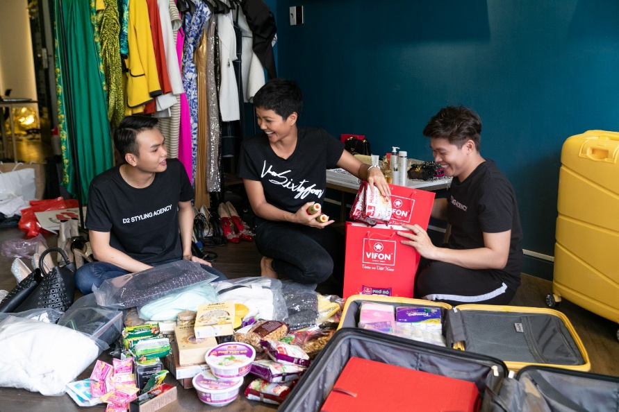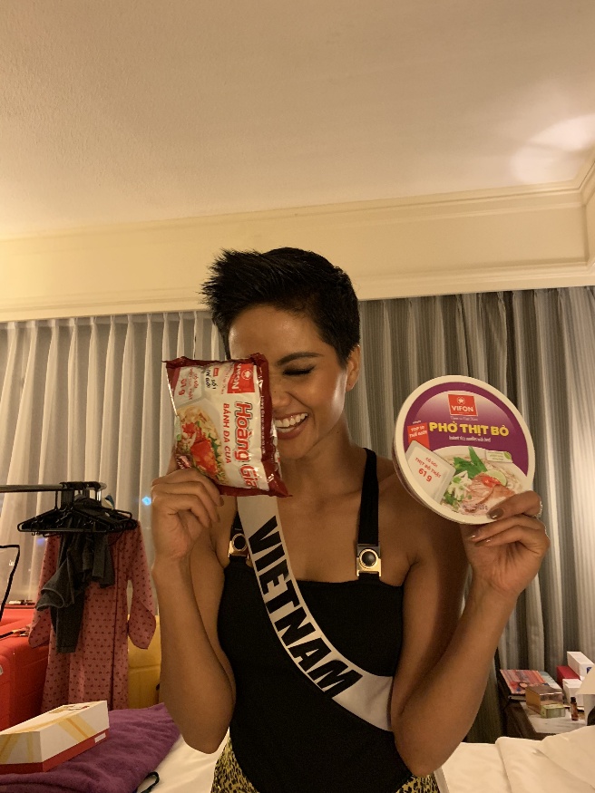Trước khi chính thức lên đường tham gia Miss Universe, H’Hen Niê chuẩn bị hẳn một vali các sản phẩm ăn liền, giúp cô nguôi cảm giác nhớ nhà và cảm nhận được tình cảm, sự ủng hộ ở Việt Nam luôn dành cho mình.