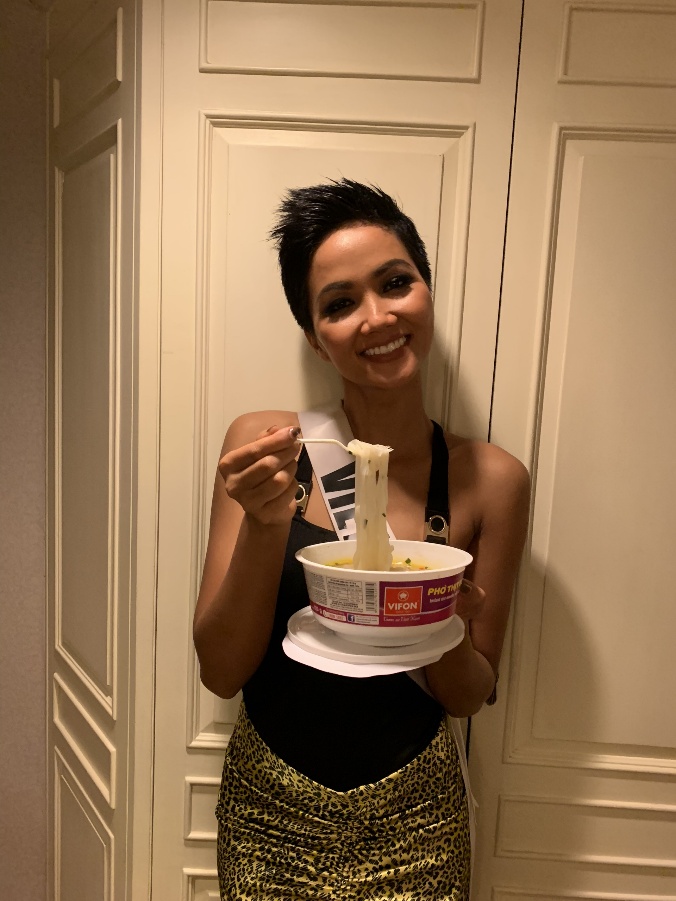 Bí kíp của H’Hen Niê rất đơn giản, là chỉ cần mang theo bên mình vài tô phở ăn liền là đã có thể giải quyết nhanh được vấn đề. Cô tiết lộ thích phở ăn liền VIFON vì vị phở đậm đà và mùi hương rất đặc trưng phở Việt nam, đặc biệt có túi thịt thật rất to bên trong giúp cô nhanh chóng phục hồi năng lượng và bổ sung những dinh dưỡng cần thiết. Phở VIFON còn được ví như người bạn đồng hành của H’Hen Niê, giúp cô nguôi bớt nỗi nhớ nhà và lấy lại tinh thần một cách nhanh chóng nhất.