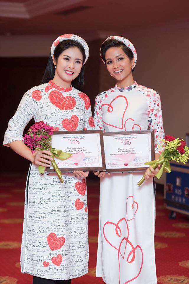 H'Hen Niê cùng Hoa hậu Ngọc Hân xuất hiện trong trang phục áo dài tại một chương trình từ thiện, bán đấu giá, gây quỹ mổ tim cho các bệnh nhi nghèo trên địa bàn cả nước.