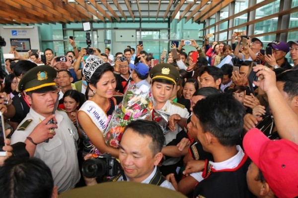 Trưa 22/1, H’Hen Niê về thăm quê nhà Đắk Lắk sau hơn 2 tuần đăng quang Miss Universe Vietnam 2017. Ngay khi đáp xuống sân bay, người đẹp Ê Đê bật khóc nức nở khi được gặp lại bố mẹ, người thân trong gia đình cũng như vô cùng xúc động trước tình cảm mà người dân ở quê nhà dành cho cô trong suốt thời gian qua.