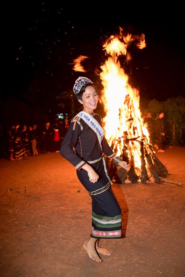 H'Hen Niê nhảy múa cùng buôn làng khi được về thăm gia đình.