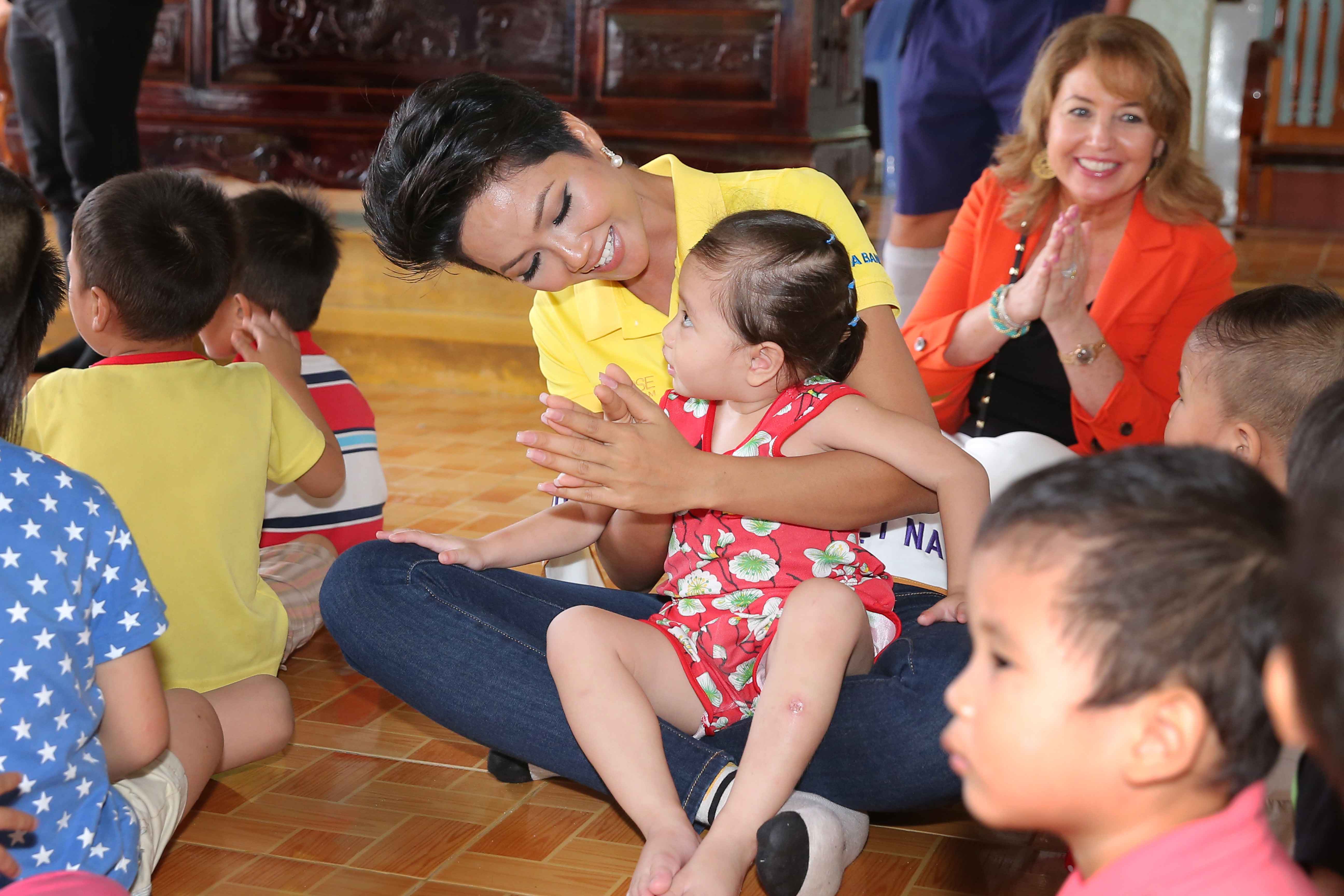 Không nghỉ ngơi sau khoảng thời gian dài tham gia cuộc thi, H'Hen Niê tiếp tục hành trình thiện nguyện trên cương vị mới - Hoa hậu Hoàn vũ Việt Nam. Ngày 20/1, cô có chuyến giao lưu và gây quỹ cho trẻ em nhiễm HIV tại Phú Quốc. Tại đây, người đẹp thoải mái vui đùa nhằm xoá đi mặc cảm, khoảng cách với các em.