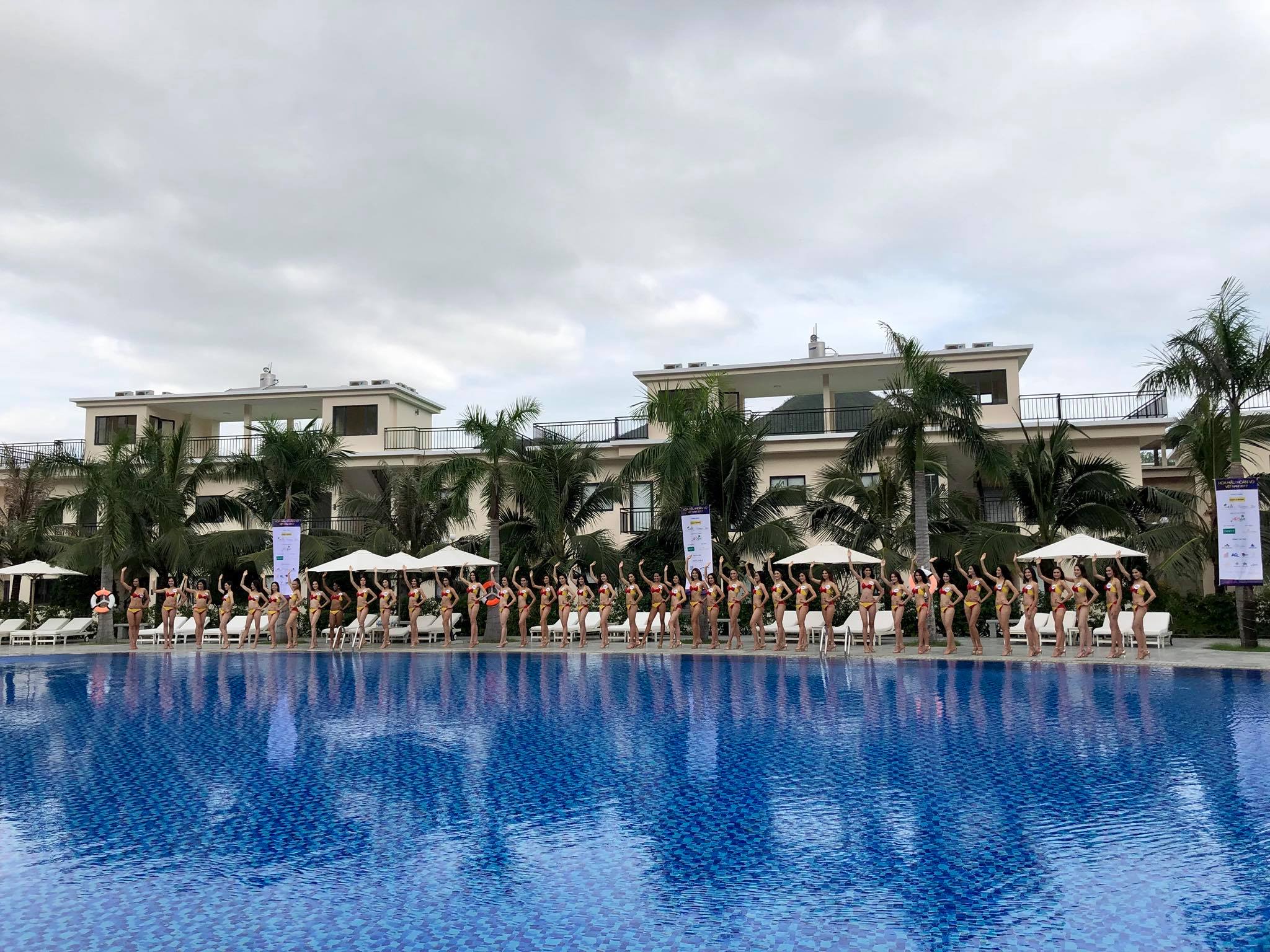 42 gương mặt xinh đẹp của Hoa hậu Hoàn vũ Việt Nam khoe dáng bên hồ bơi.