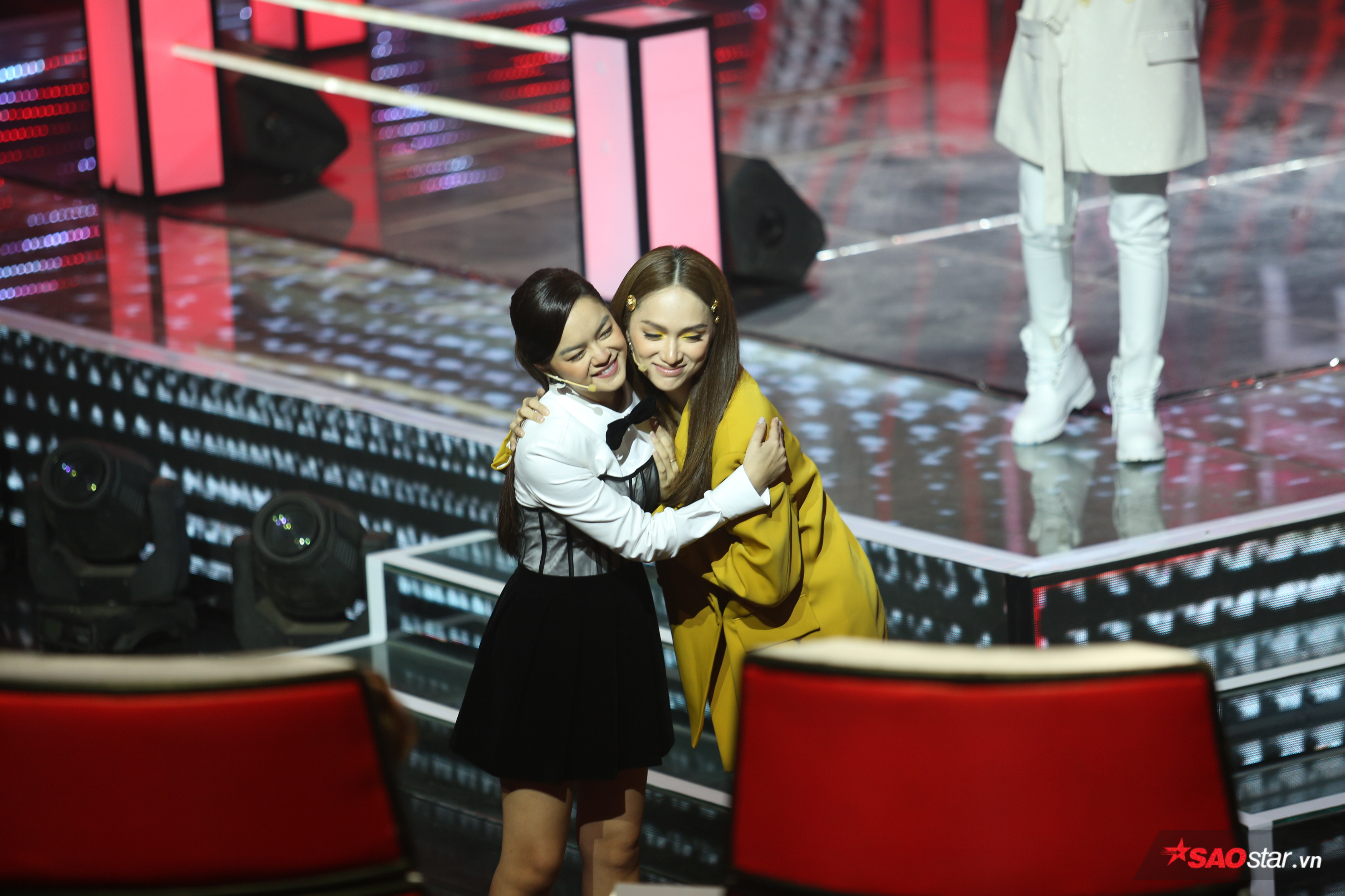 Bày tỏ sự biết ơn của mình, phía dưới sân khấu, trong giây phút xúc động chia tay hai trò cưng, HLV Hương Giang đã tha thiết ôm ấp và gọi HLV Phạm Quỳnh Anh là “chị yêu”. Khoảnh khắc này khiến cho các fan của hai ca sĩ vô cùng thích thú và ngợi ca.