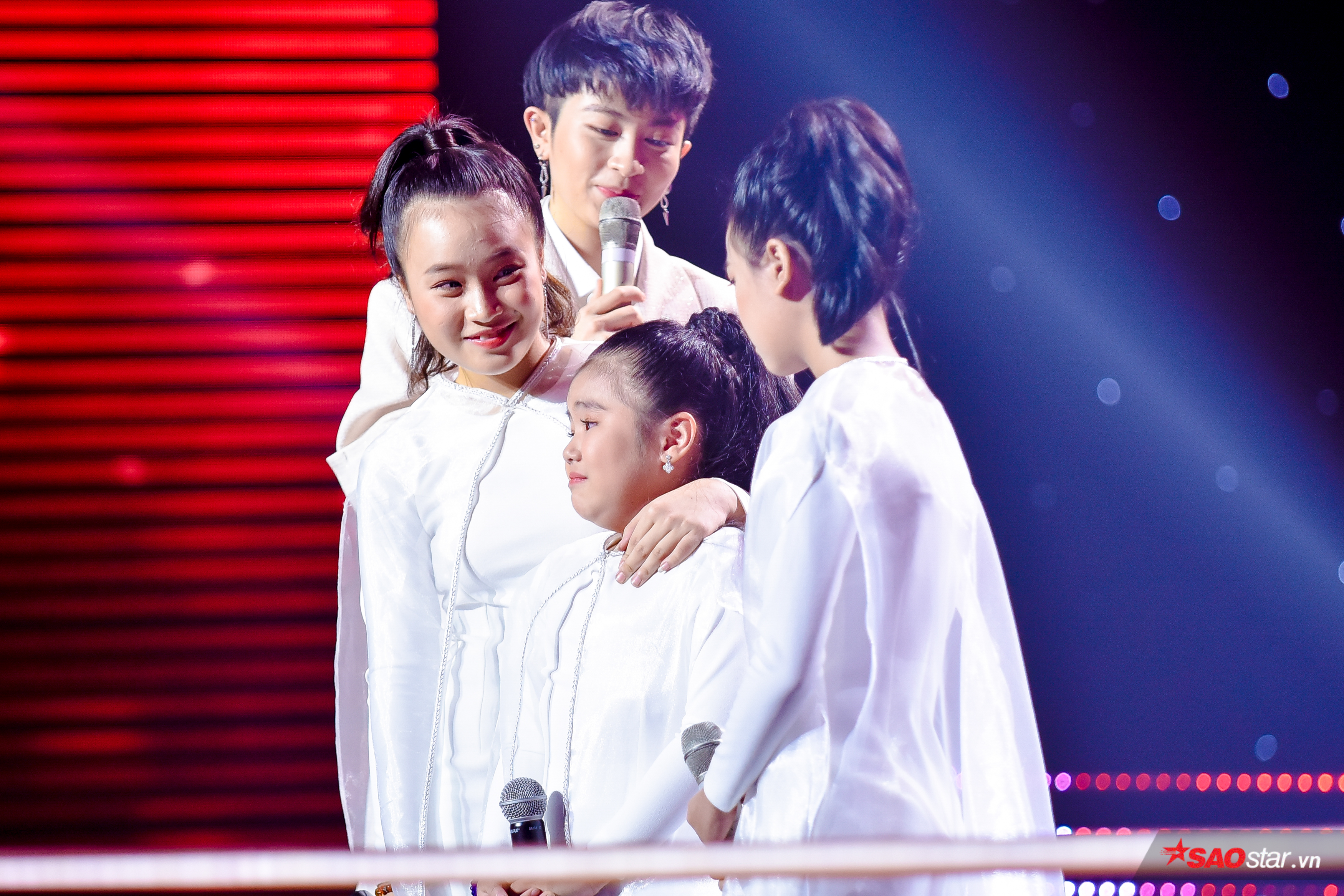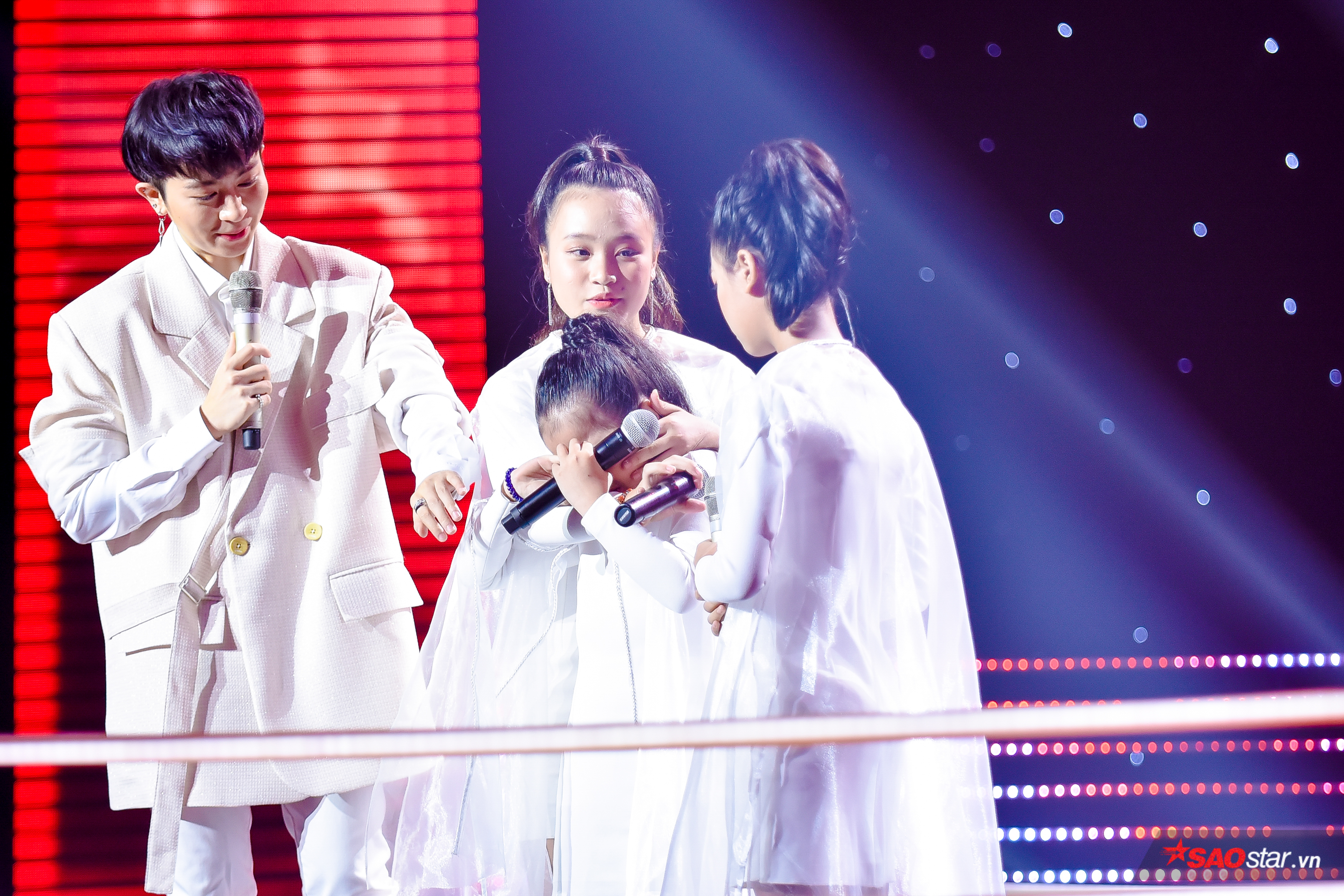 Cả trường quay im phăng phắc, lắng đọng trước khoảnh khắc khóc nghẹn của thiên thần nhỏ Minh Hằng team HLV Dương Khắc Linh - Phạm Quỳnh Anh. Được chọn là thí sinh đi tiếp, Minh Hằng vừa cảm thấy vui nhưng cũng rất buồn. Cô bé đã không nói thành lời cho đến khi lấy lại được bình tĩnh, bằng hành động “keep calm” của mình, Minh Hằng khiến Lưu Thiên Hương bất ngờ khen tặng là “đầy chất nghệ sĩ”.