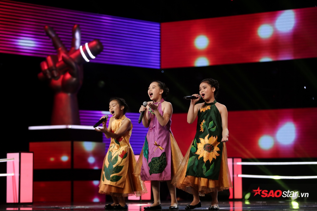Xuất hiện trên sân khấu, 3 cô bé tinh nghịch Hoài Ngọc - Châu Linh - Kim Ngân đã thổi một làn gió mới cho hit của ca sĩ Ngọc Khuê. Bằng những cách luyến láy và cách chuyển giai điệu vô cùng ấn tượng, phần chia câu và bè phối nhịp nhàng làm nên một tiết mục sôi động.