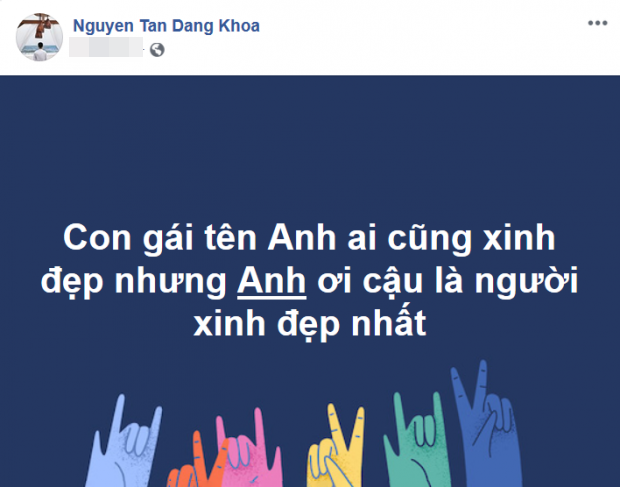 Đây là bài post trước đó trên trang cá nhân của Đăng Khoa mà theo Jun Vũ là do chính cô tự ý post lên “để khen mình”.