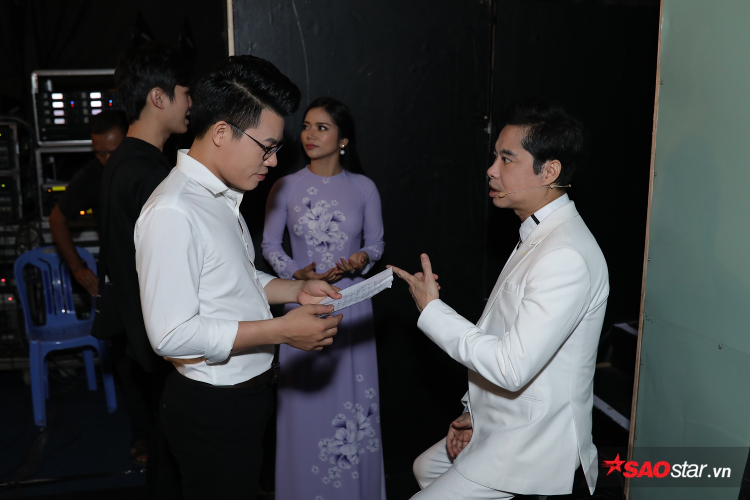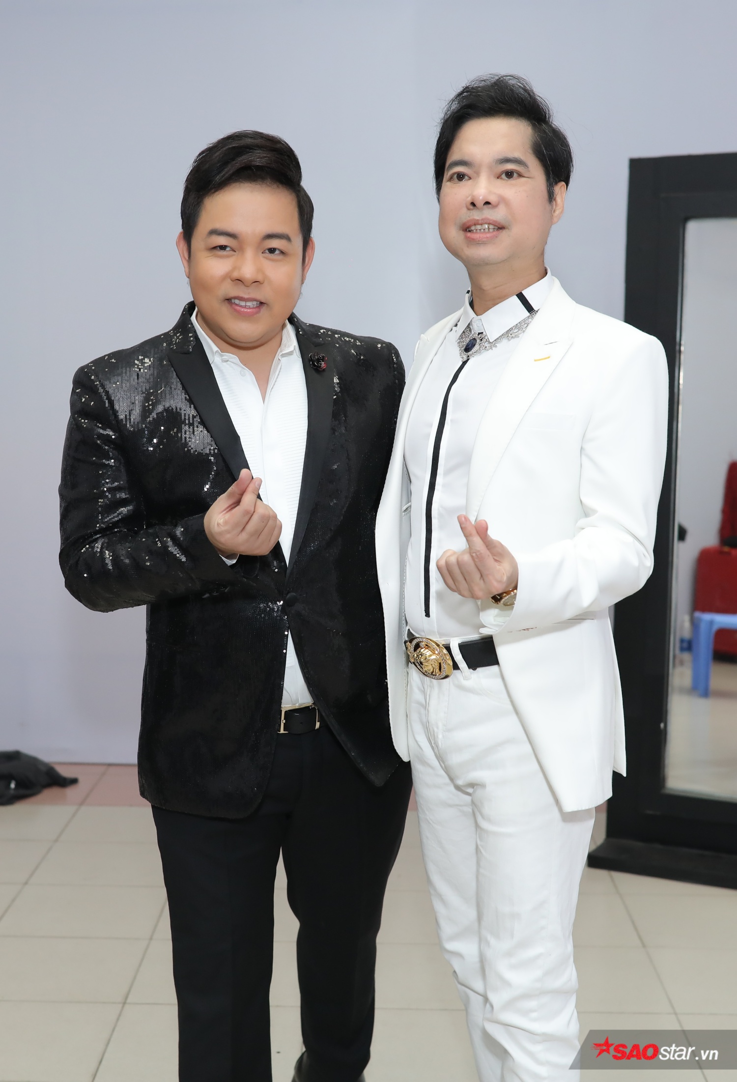 “Hắc bạch công tử” Quang Lê - Ngọc Sơn thân thiết, tạo dáng trong hậu trường.