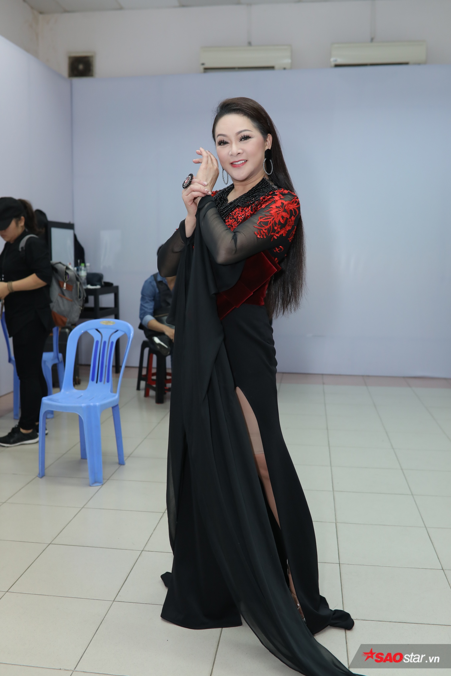Nữ HLV xuất hiện rạng rỡ với trang phục độc đáo.