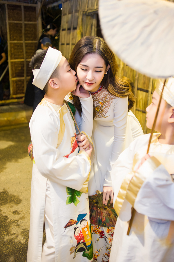 Chân dài sinh năm 1995 chia sẻ: “Ngân Anh có cảm tình rất lớn dành cho tà áo dài Việt Nam. Vì vậy được góp mặt trong show diễn áo dài vừa hoành tráng lại ý nghĩa lần này là niềm vinh dự và hạnh phúc lớn đối với Ngân Anh. Dù công việc khá bận rộn vào cuối năm nhưng Ngân Anh vẫn tranh thủ sắp xếp thời gian để bay từ Sài Gòn ra Hội An tham dự”.