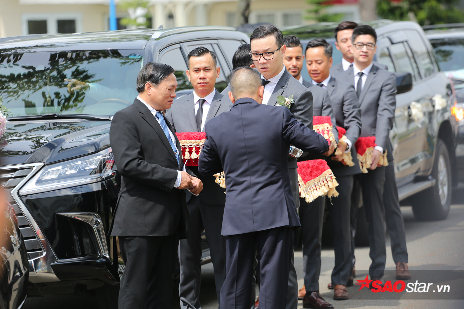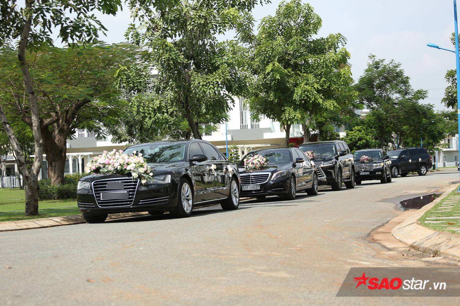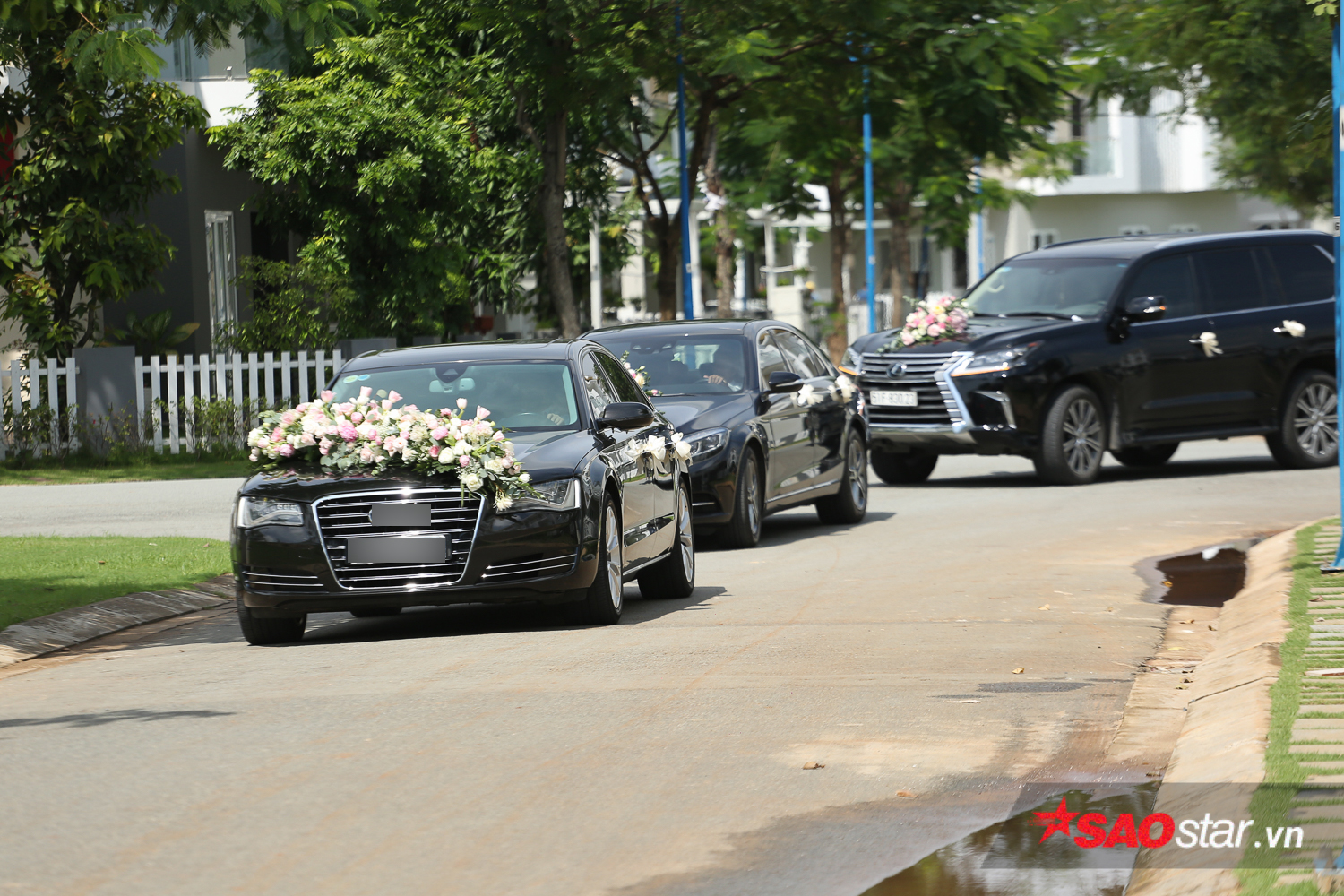 Dàn xe hơi bên nhà chú rể Trung Tín từ từ tiến vào nhà riêng của hoa hậu Đặng Thu Thảo.
