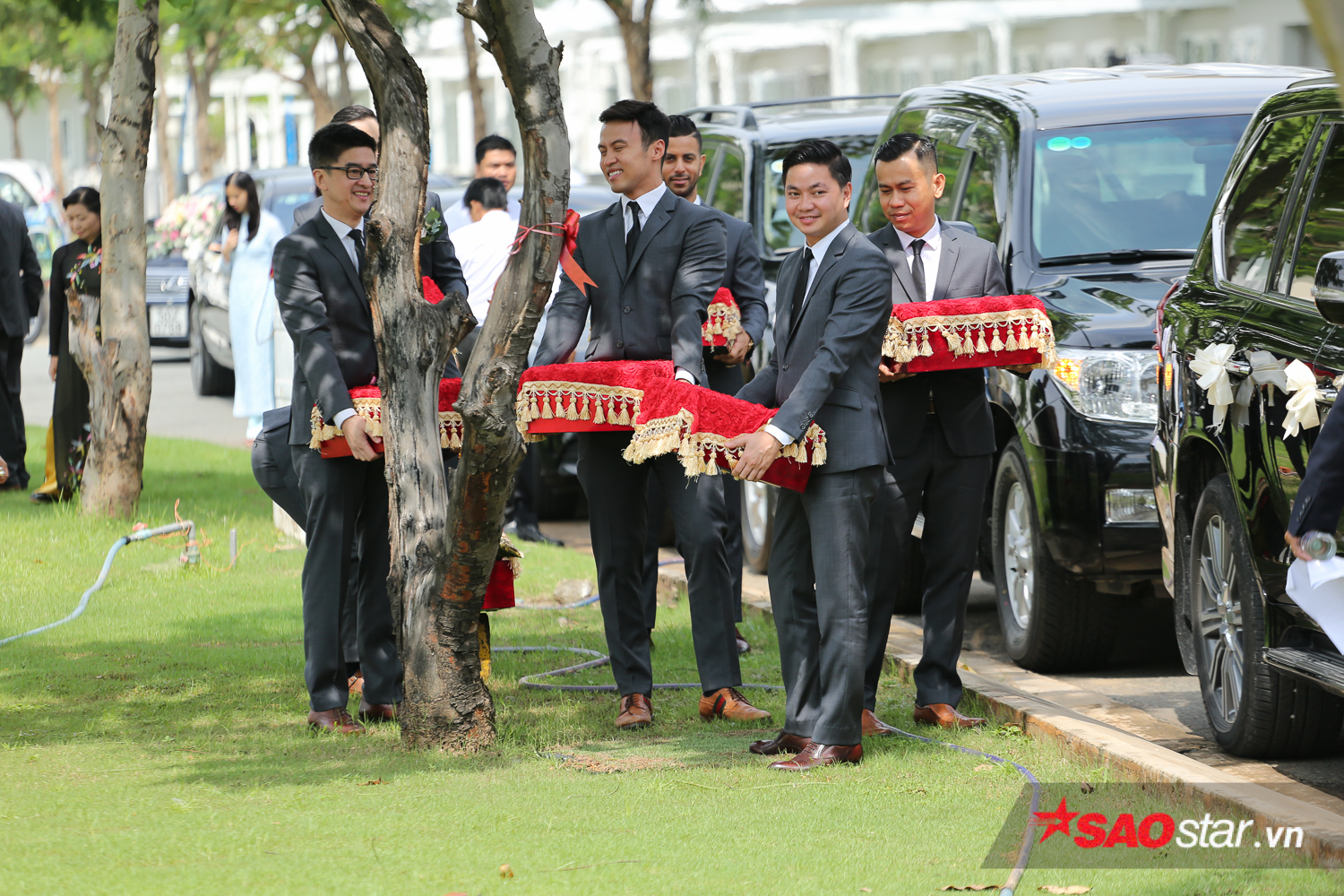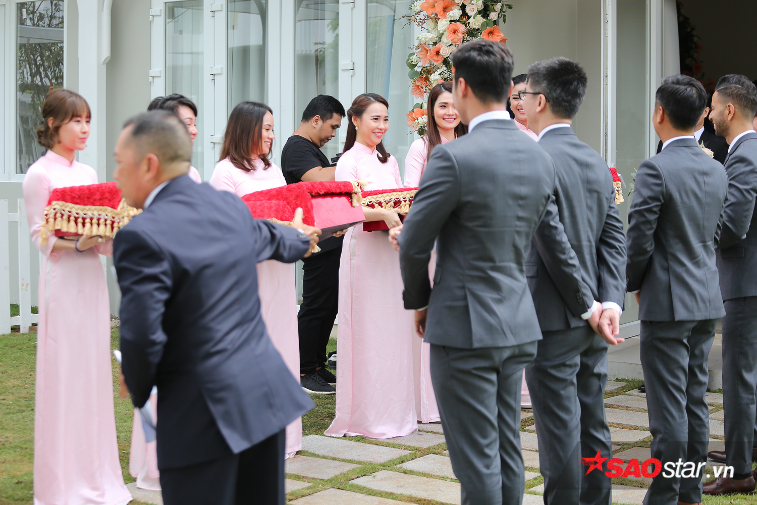 Dàn trai xinh - gái đẹp bê tráp trong lễ vu quy tại nhà Đặng Thu Thảo.