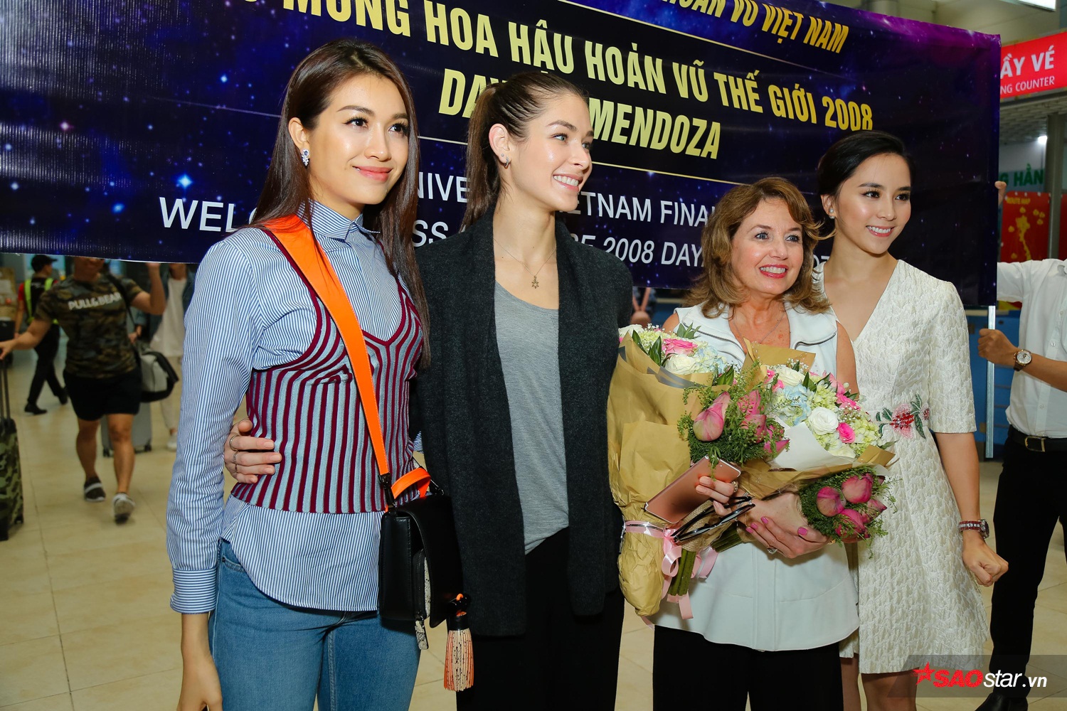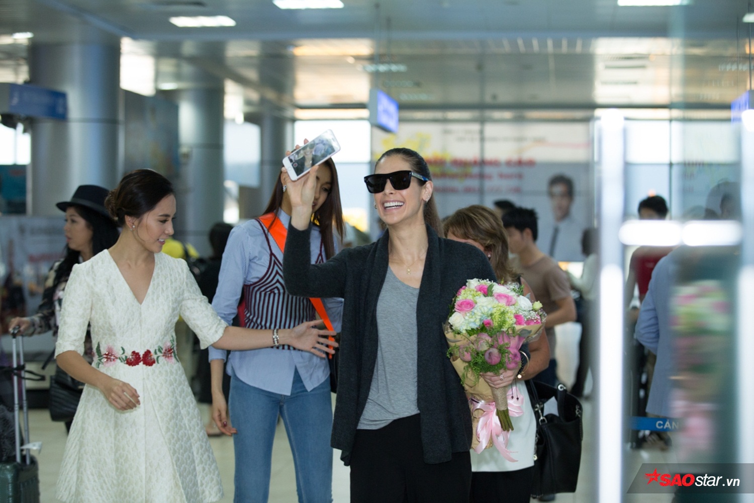 Cô được đón tiếp nồng nhiệt bởi Á hậu Dương Trương Thiên Lý cùng Lệ Hằng.