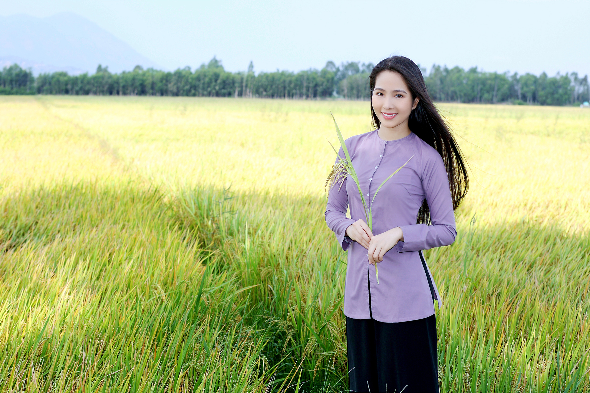 Hoa hậu Dương Kim Ánh hoá thân thành thôn nữ xinh xắn trên đồng lúa vàng.