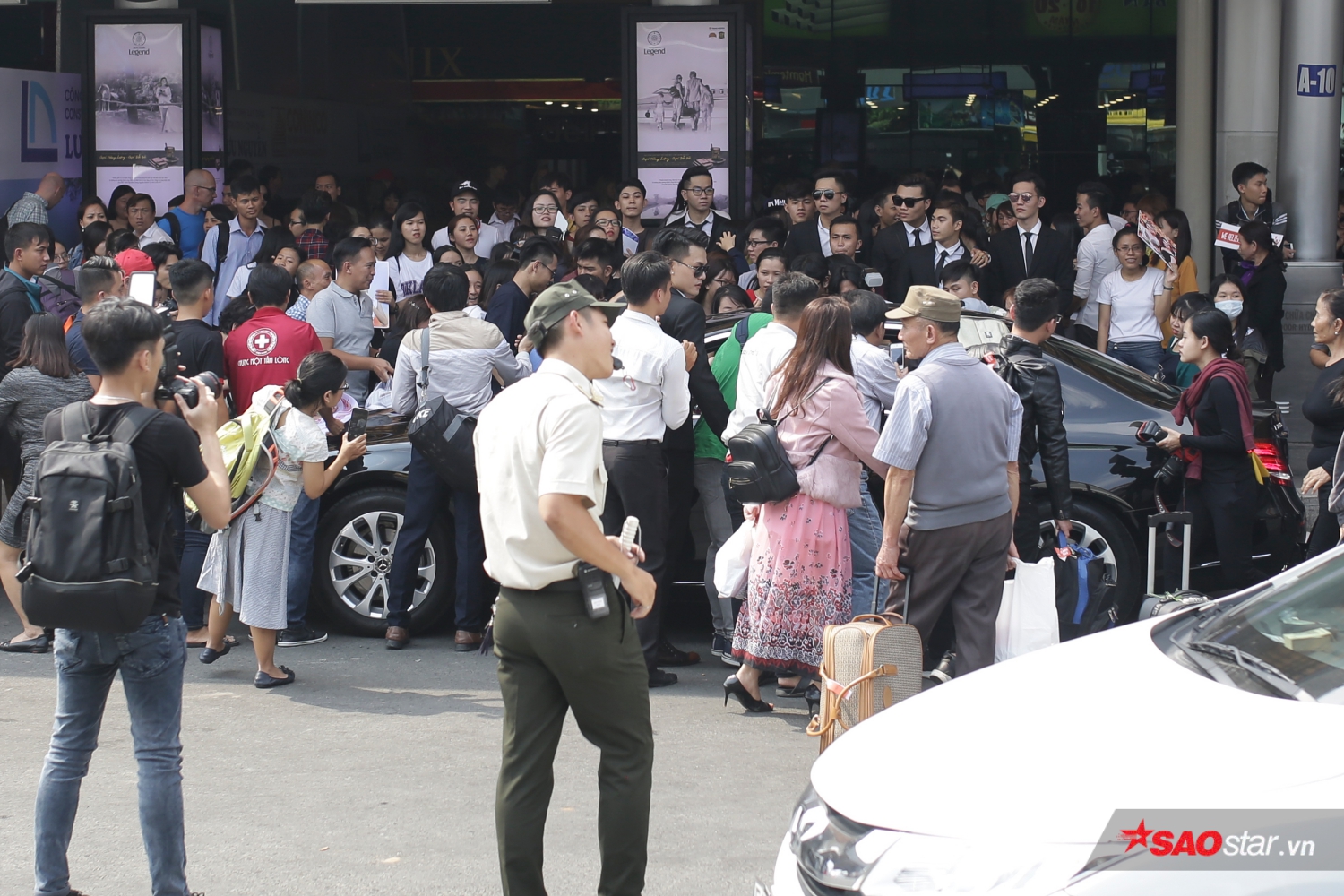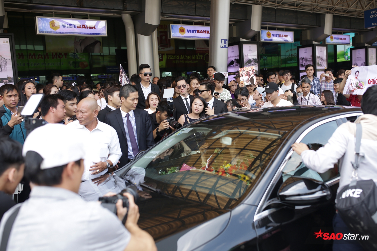 Từ rất sớm, khá đông người hâm mộ đã có mặt tại sân bay Tân Sơn Nhất để chào đón nàng Tân hoa hậu cũng như 2 Á hậu.