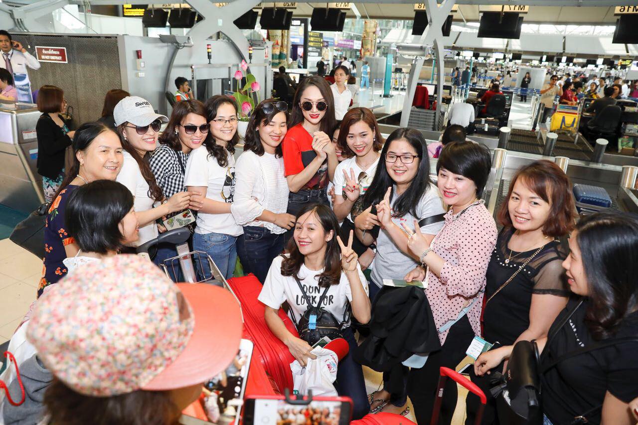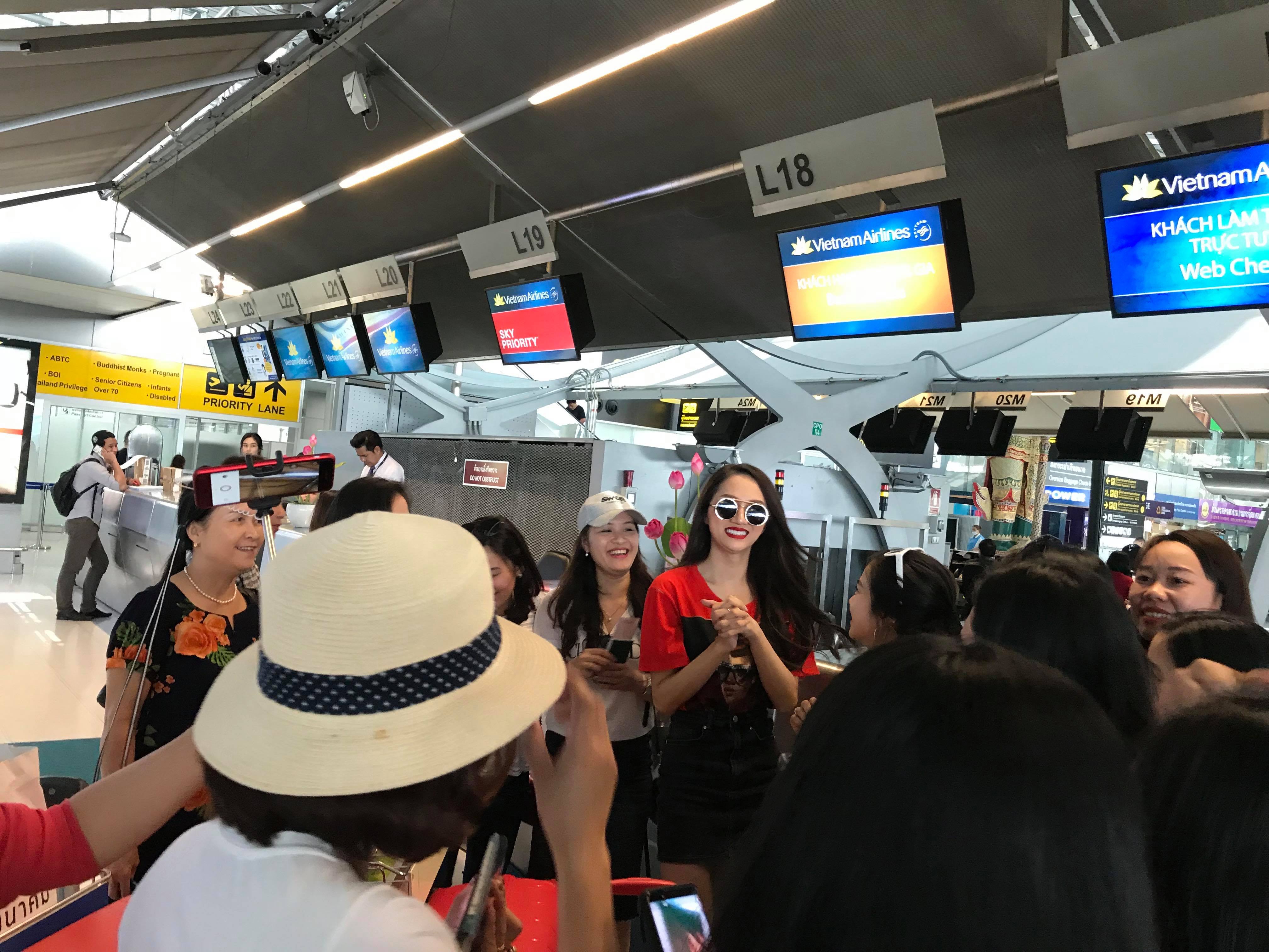 Hương GIang được fan chào đón nồng nhiệt ở sân bay Thái Lan.