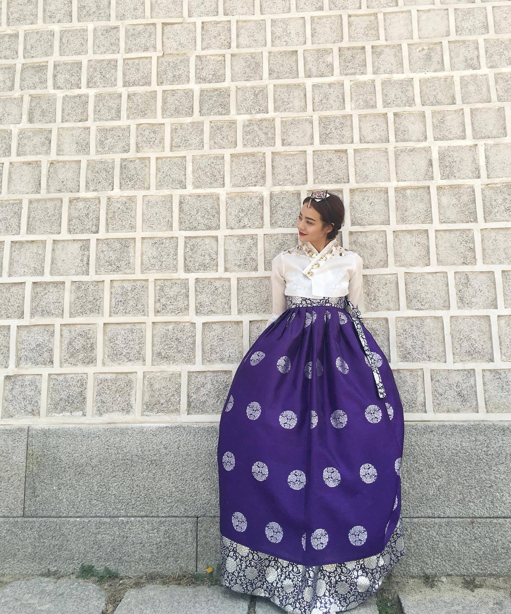Trong bộ Hanbok truyền thống của Hàn Quốc, Kiều Ngân trông thật xinh đẹp và dịu dàng như nàng Dae Jang Geum trong bộ phim truyền hình cùng tên rất nổi tiếng của quốc gia này.
