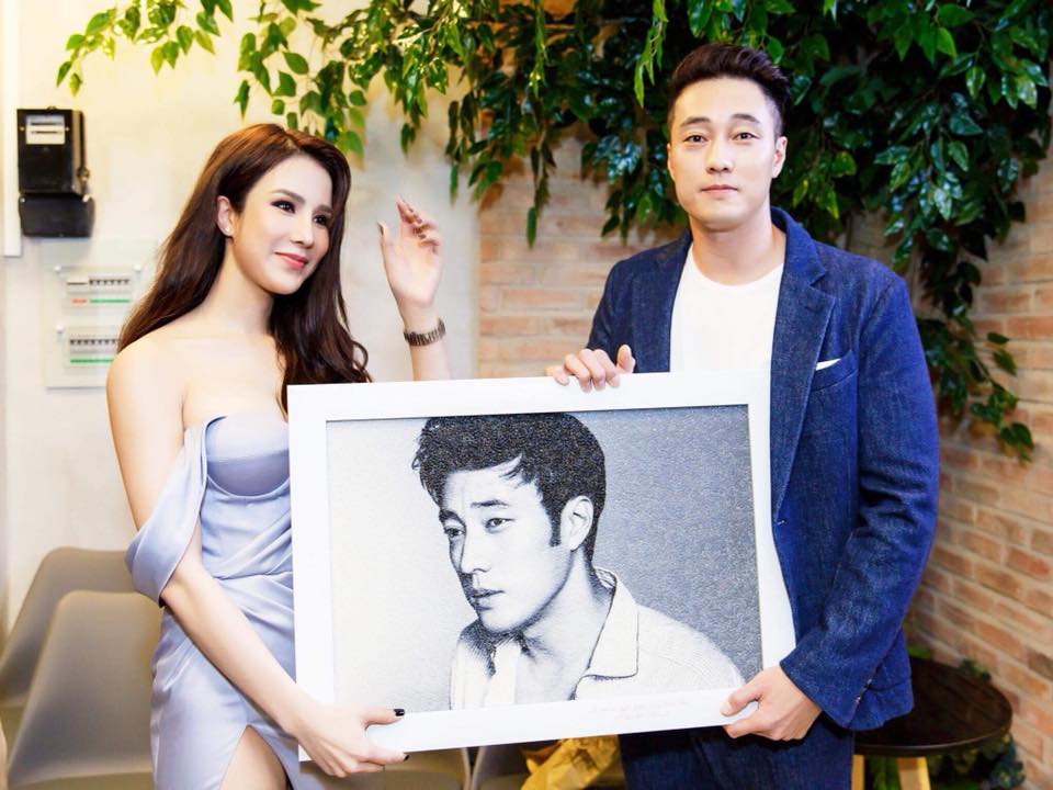Diệp Lâm Anh tặng So Ji Sub bức ảnh làm từ gạo.