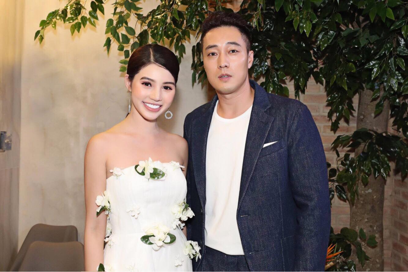 Hoa hậu Jolie Nguyễn đăng hình chụp cùng So Ji Sub và chia sẻ dòng chú thích hài hước: “Mọi người hãy chúc phúc cho chúng em”.