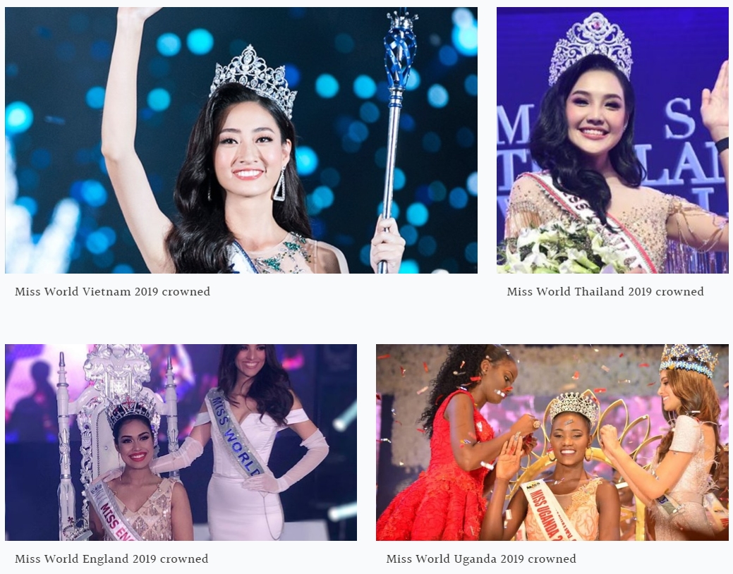 Trang wen chính thức của Miss World cập nhật hình ảnh và thông tin của Lương Thùy Linh bên cạnh đại diện Thái Lan, Uganda, Anh.