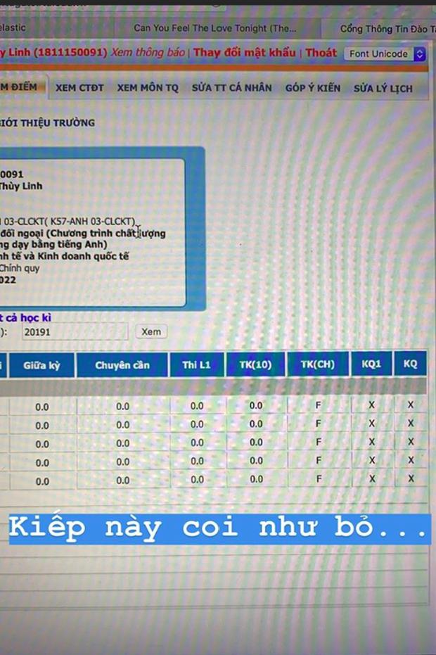 Bảng điểm toàn 0, với F của Lương Thuỳ Linh khiến cư dân mạng xôn xao.