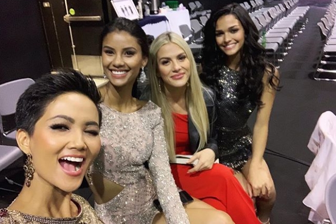 Khi đang giao lưu cùng người hâm mộ, bộ ba thí sinh Hoa hậu Hoàn vũ Mỹ - Colombia - Úc đã không bỏ qua câu hỏi của fan Việt về H'Hen Niê. Gần như đồng thanh, ba người đẹp hào hứng khen ngợi đại diện Việt Nam: “Ôi trời ơi, cô ấy đáng yêu lắm. Thời trang, thanh lịch. Đúng đấy, cô ấy vô cùng thời thượng”.