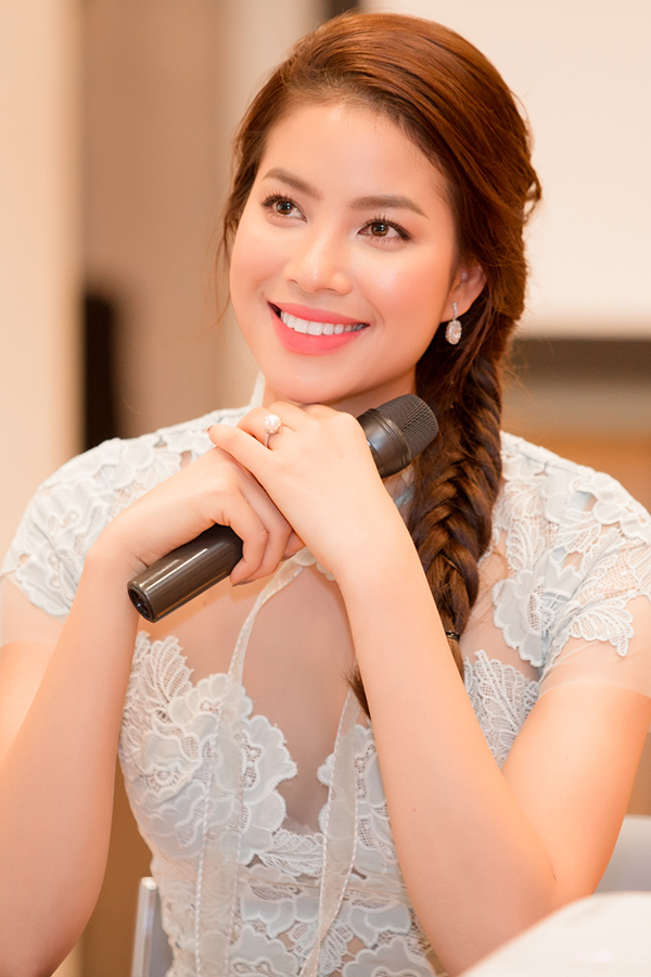 Tại buổi giao lưu, Phạm Hương diện bộ váy ren màu xanh thanh lịch. Cô cho biết, sự thanh lịch và duyên dáng luôn được trân trọng và đề cao tại Nhật Bản nên Phạm Hương đã chọn phong cách này trong buổi giao lưu.