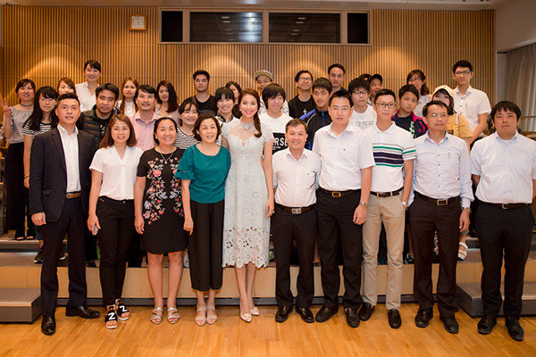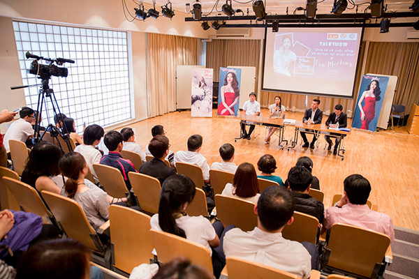 Ngay sau đó, Hoa hậu Phạm Hương có buổi giao lưu cùng thầy cô các trường đại học ở Việt Nam tham gia đi Nhật cùng và hàng trăm sinh viên, học sinh Việt Nam đang học cũng như làm việc tại Osaka.