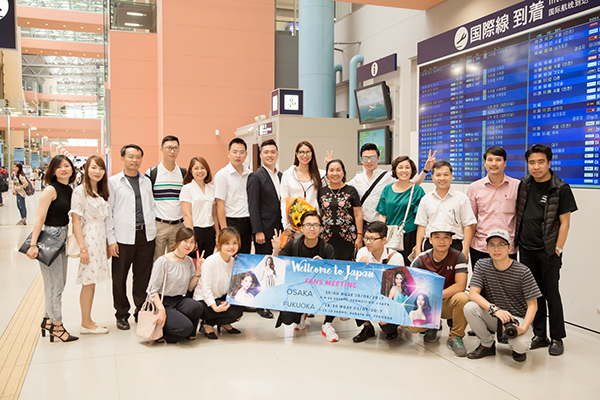 Vừa xuống sân bay Osaka, Phạm Hương đã nhận được sự yêu mến của nhiều sinh viên Việt Nam tại Nhật Bản. Các bạn đã bắt chuyến xe hơn 100 km để đón cô và chụp ảnh cùng đoàn.
