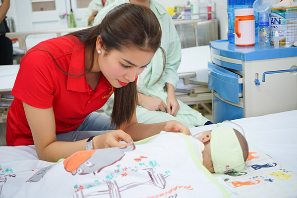 Phạm Hương đến thăm các em nhỏ ở Bệnh viện Trẻ Em - Hải Phòng.