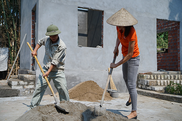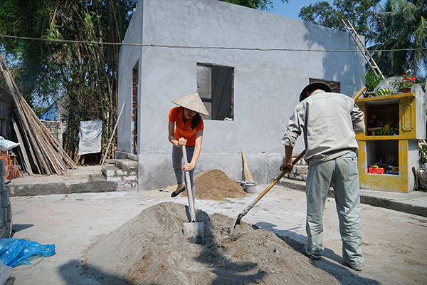 Không những thế, Phạm Hương còn tự tay góp chút công sức vào việc xây dựng. Tuy mệt nhưng cô luôn cười và hạnh phúc với những gì mình đang làm. Là người con của vùng đất Hải Phòng, cô luôn muốn được thực hiện cũng như đóng góp một điều gì đó cho quê nhà - nơi cô “chôn nhau cắt rốn”. Vì thế, với Phạm Hương, cô còn muốn làm nhiều hơn thế, chứ không đơn thuần là trao tặng nhà tình thương.