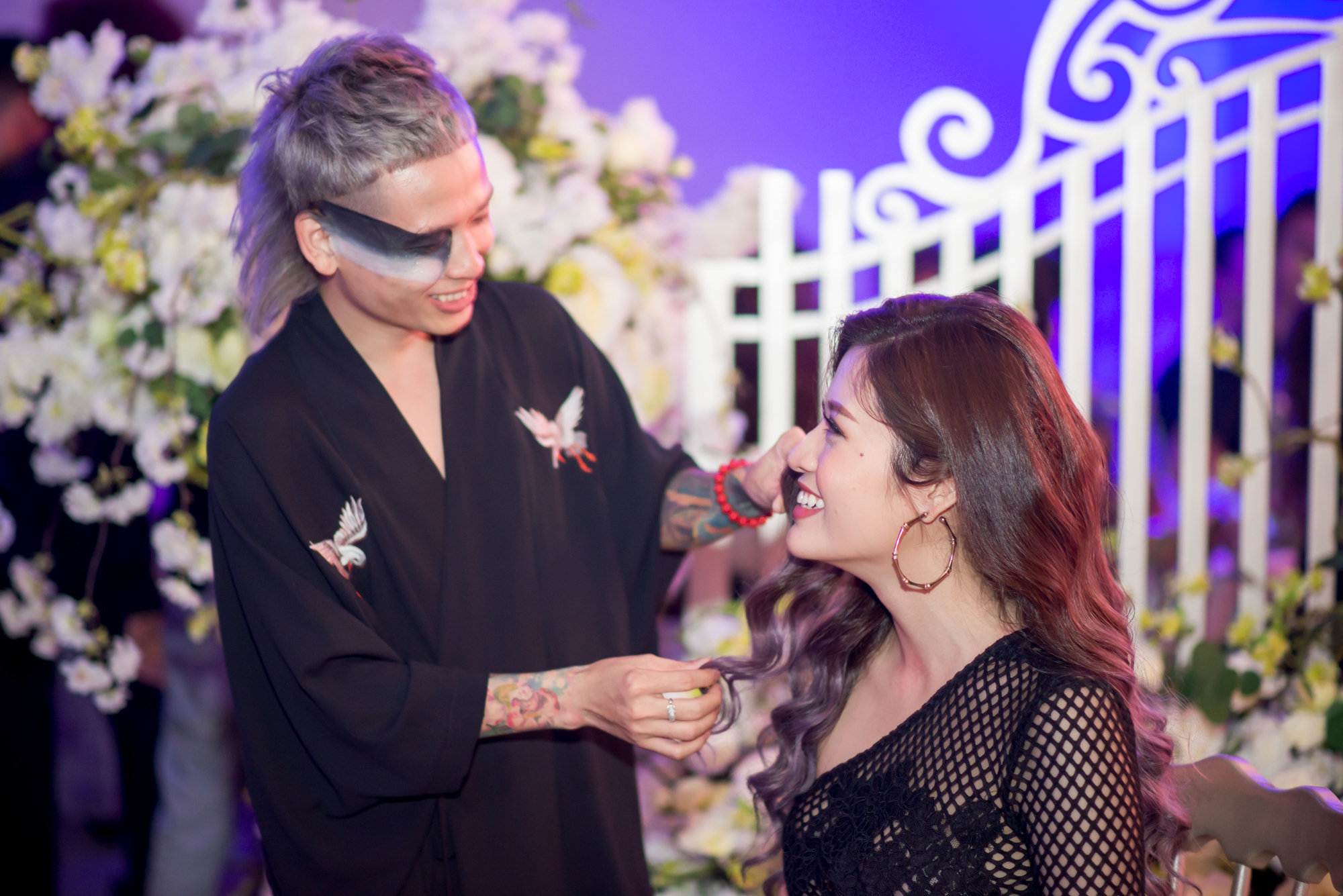 Không chỉ gây ấn tượng với mái tóc nhuộm 2 lớp cầu kỳ, Phan Hoàng Thu còn khoe trọn vóc dáng gợi cảm bằng chiếc váy lưới xuyên thấu. Với các họa tiết hoa ren đắp nổi, chiếc váy không gây cảm giác phản cảm mà khá sang trọng, bắt mắt và kín đáo.