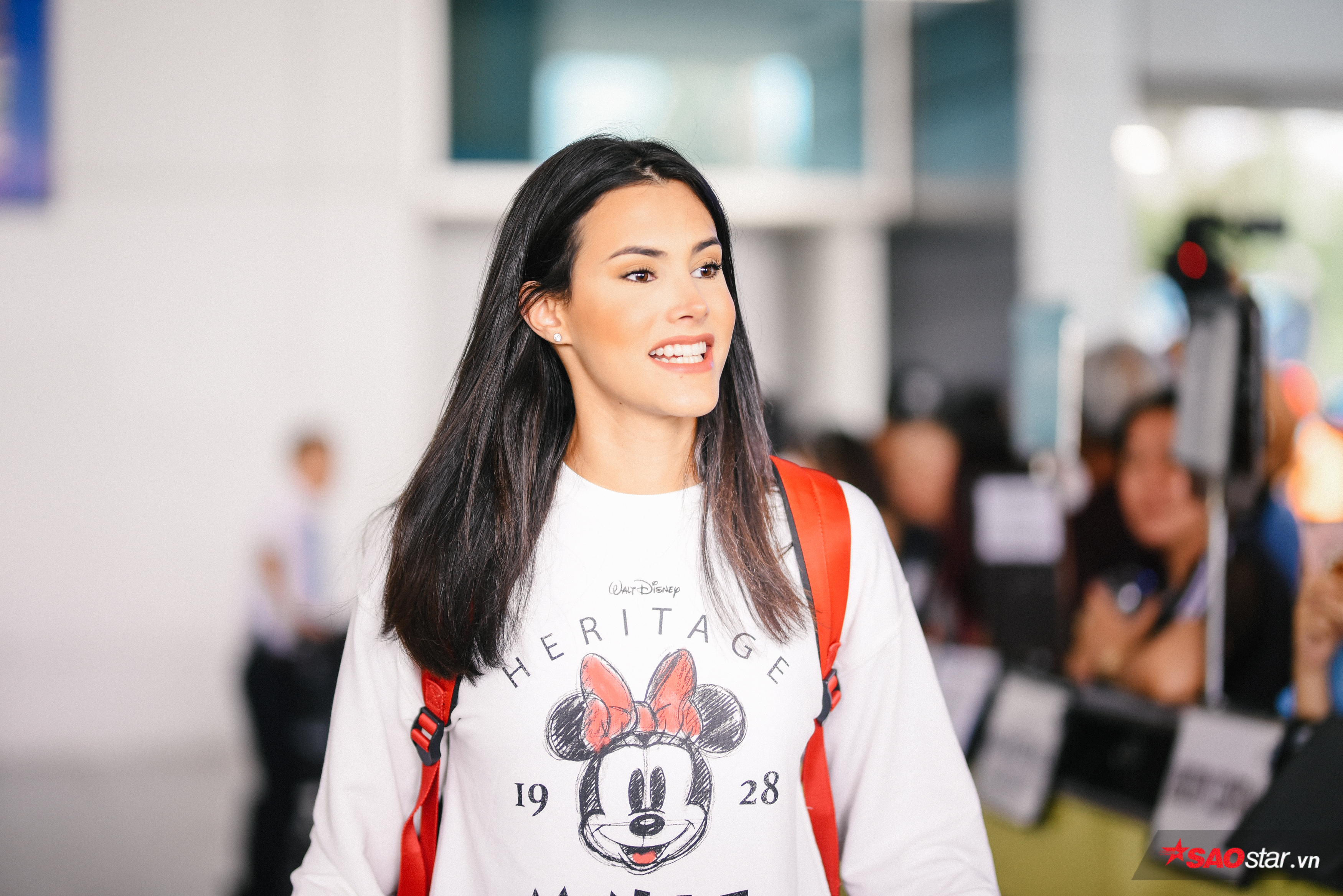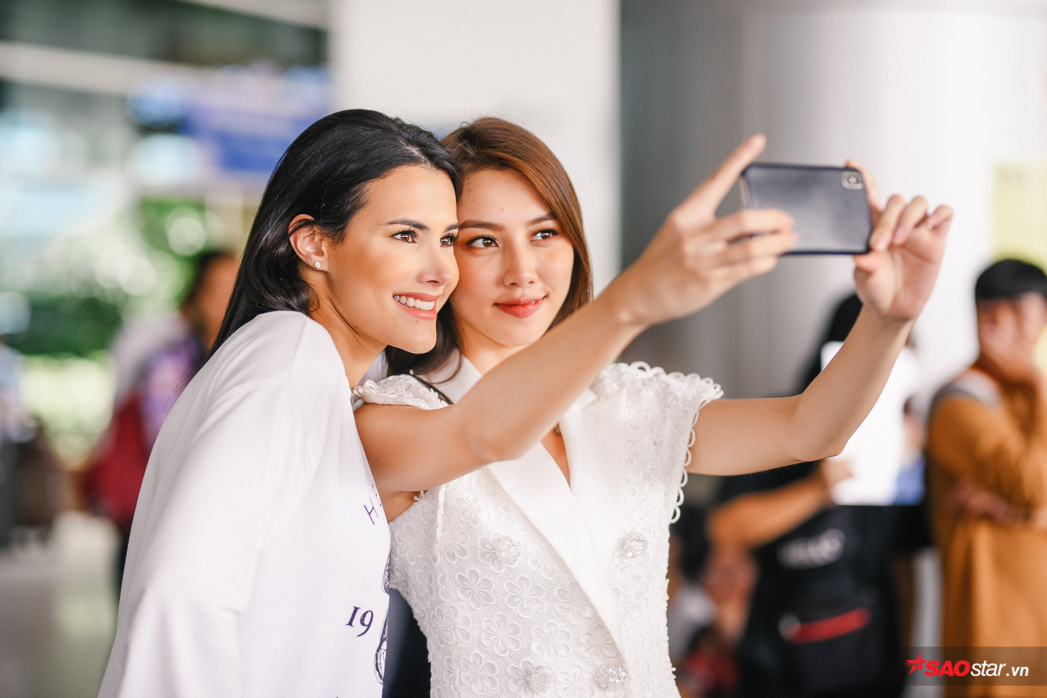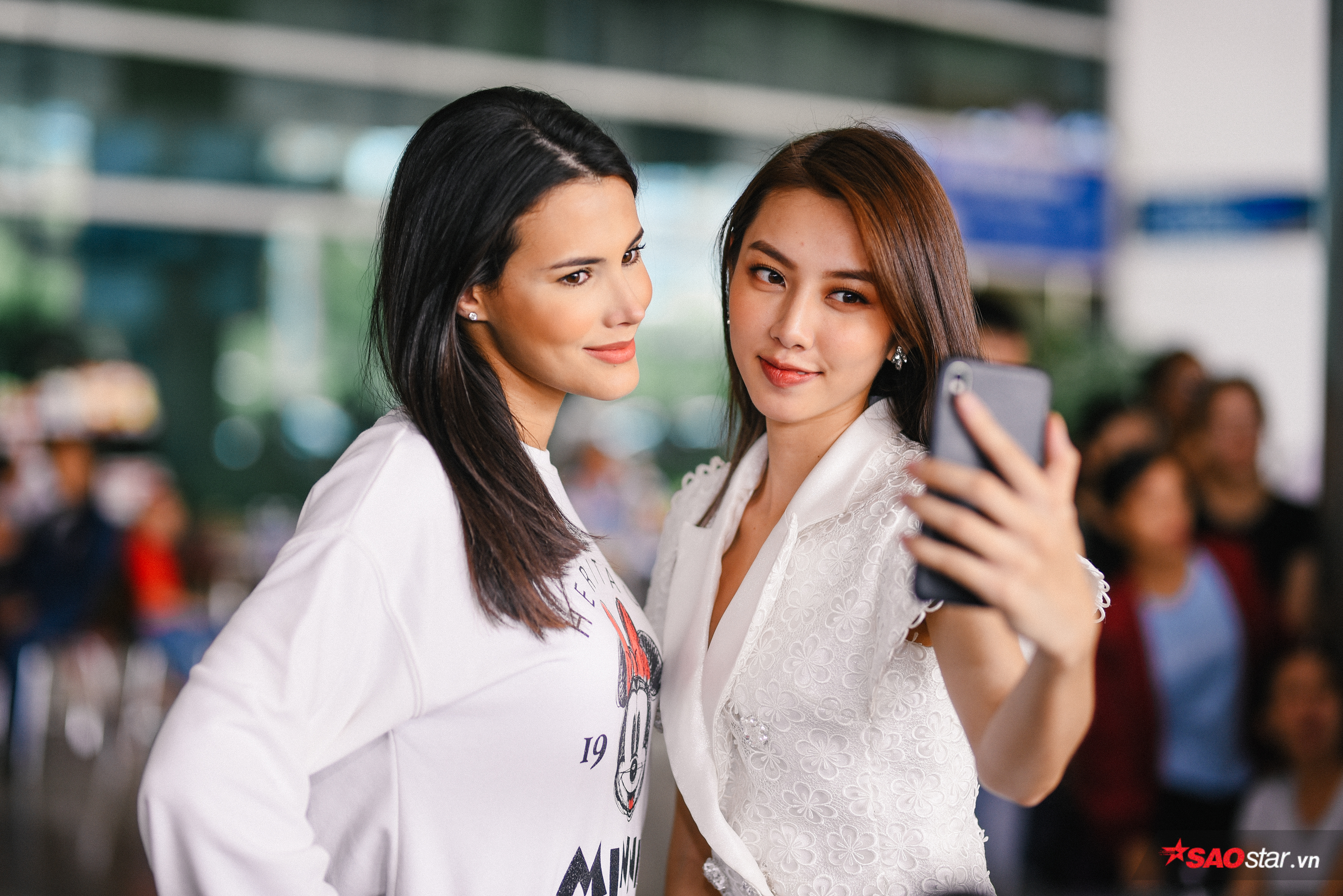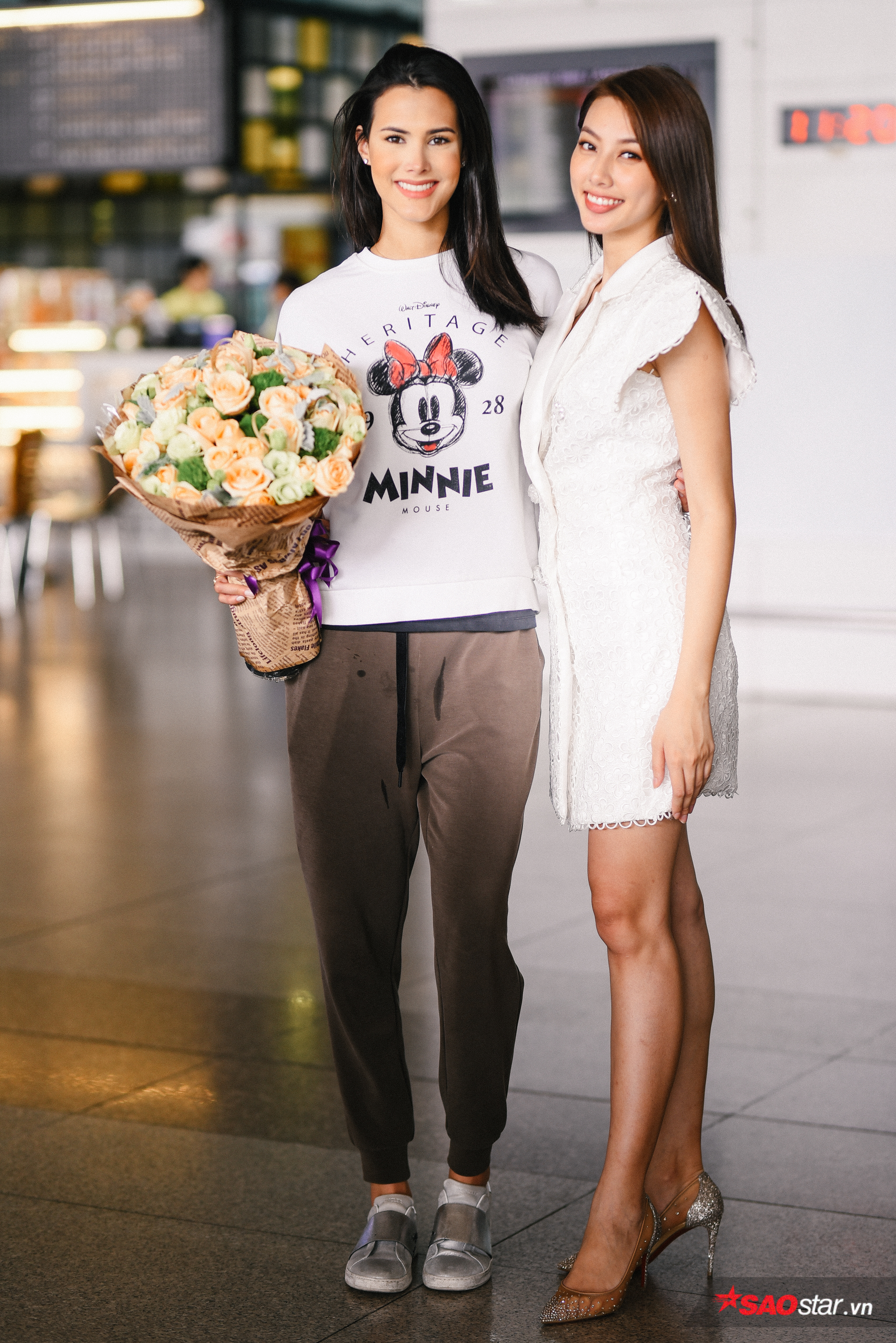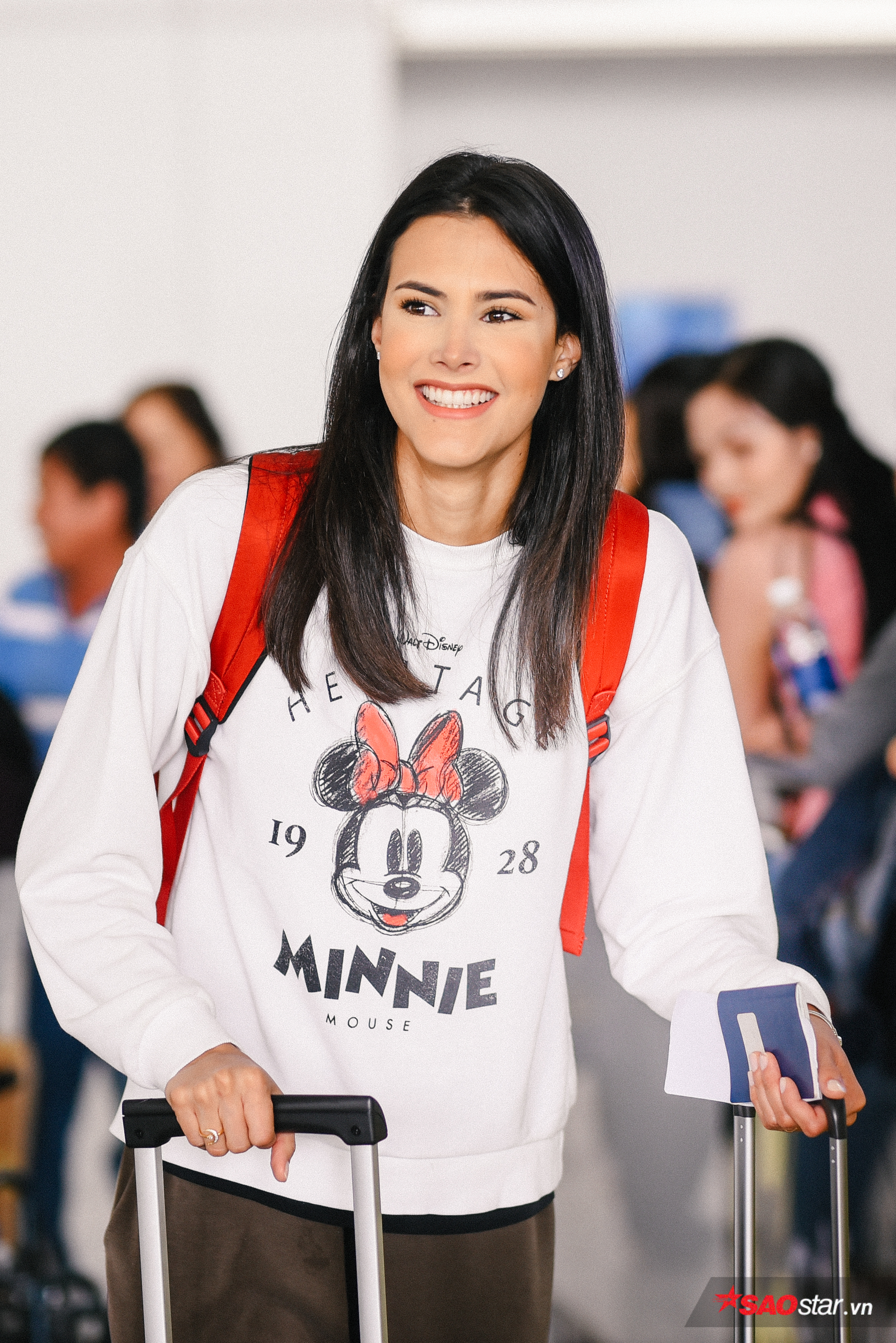 Diện trang phục đơn giản, trẻ trung, đương kim Hoa hậu Quốc tế vẫn thu hút mọi ánh nhìn với nhan sắc nổi bật, mái tóc đen và nụ cười rạng rỡ đặc trưng. Mariem Velazco hào hứng khi gặp lại Nguyễn Thúc Thùy Tiên - ứng viên Việt Nam từng cùng cô nàng tranh vương miện Miss International 2018. Thùy Tiên cũng sẽ là “hướng dẫn viên” đồng hành cùng Mariem Velazco trong những ngày mỹ nhân Venezuela làm việc và khám phá thành phố Hồ Chí Minh.