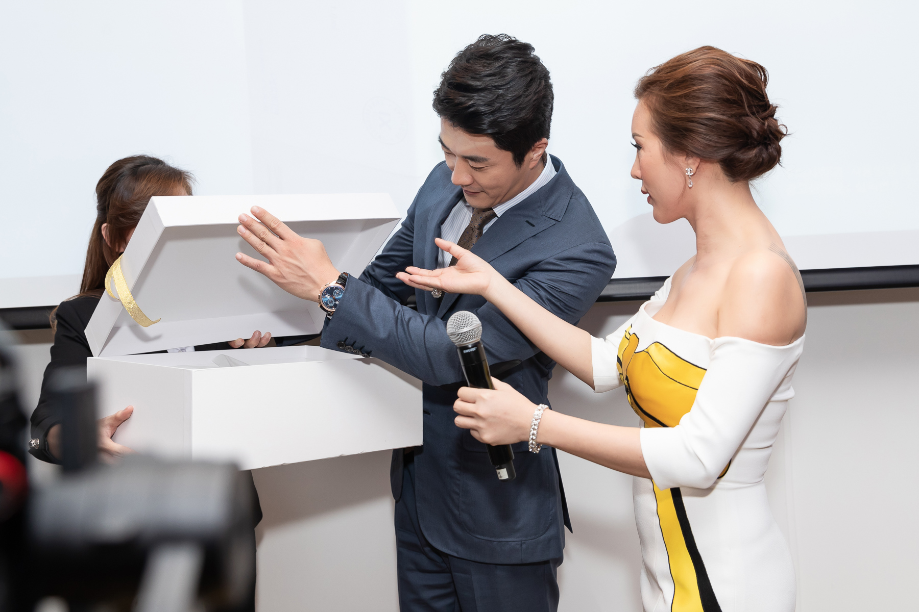 Nhân chuyến công tác ngắn ngày tại Việt Nam, diễn viên Nấc thang lên thiên đường Kwon Sang Woo cũng đã có mặt để chung vui cùng hoa hậu Thu Hoài.
