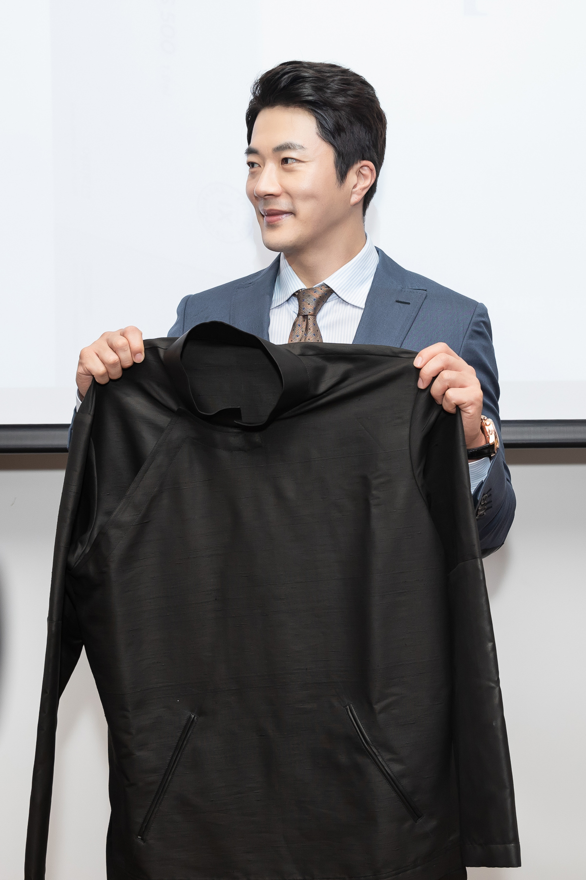 Với sự thân thiện khi đồng hành cùng hoa hậu Thu Hoài suốt các sự kiện diễn ra trong ngày 21/07, nhân vật chính của buổi tiệc đã quyết định tặng cho Kwon Sang Woo một bộ áo dài Lãnh Mỹ A do đích thân Công Trí thiết kế.