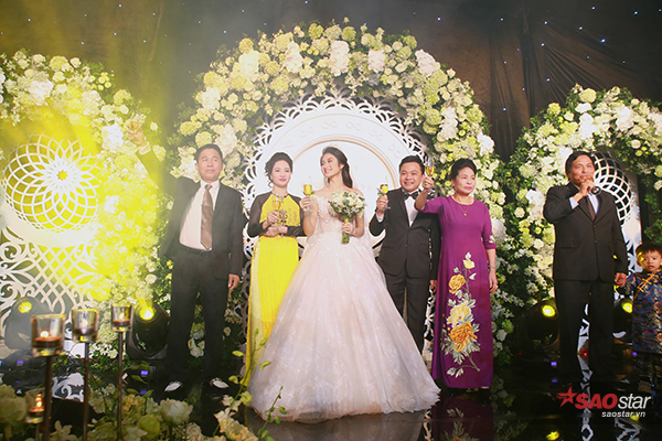 Bố mẹ hai bên gia đinh nâng ly mừng trăm năm hạnh phúc của các con.