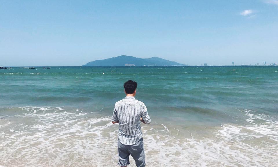 Bạn trai Thu Thảo - doanh nhân Trung Tín chia sẻ bức ảnh chụp phía sau tại bãi biển Nam Ô, Đà Nẵng.