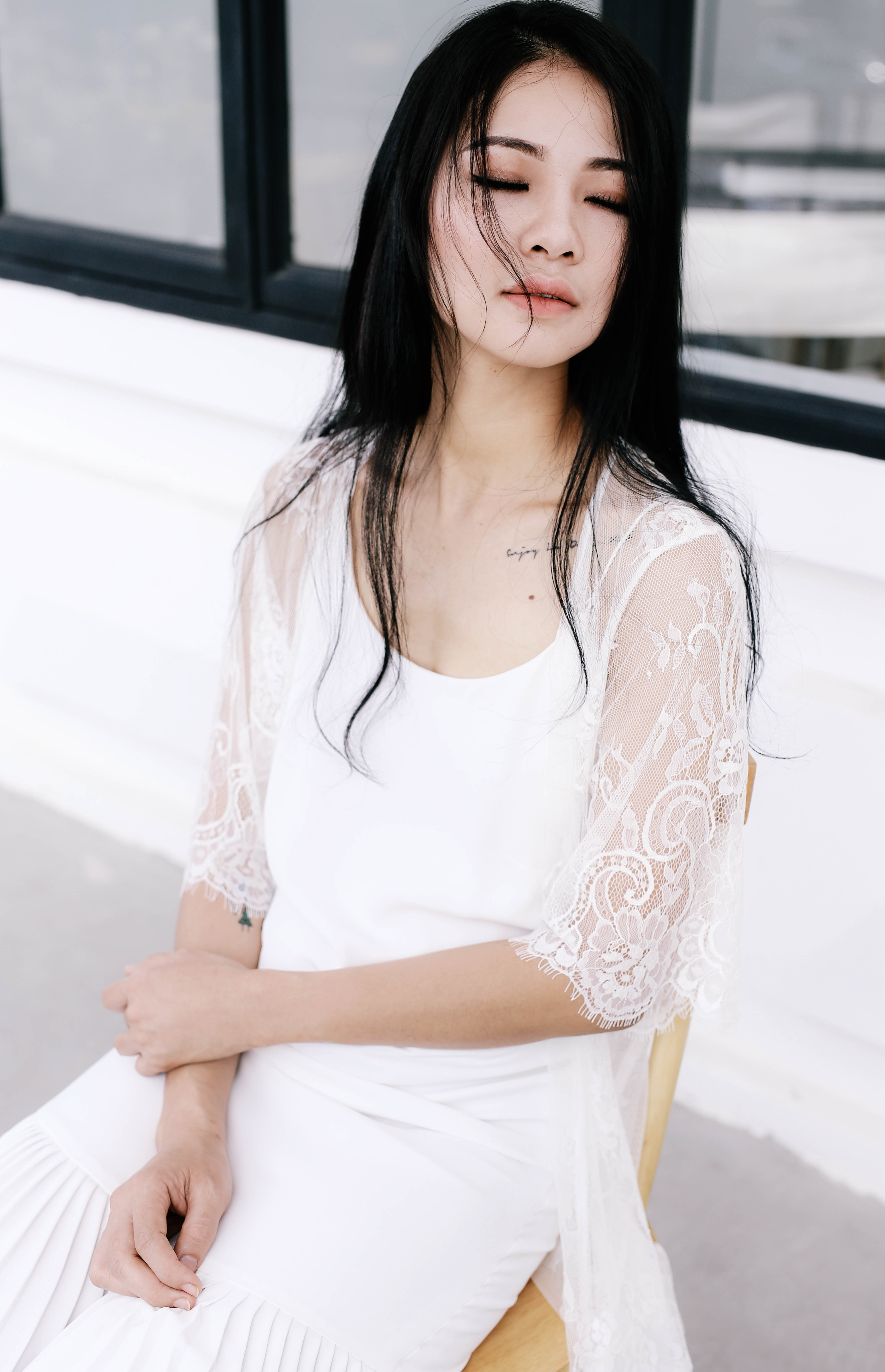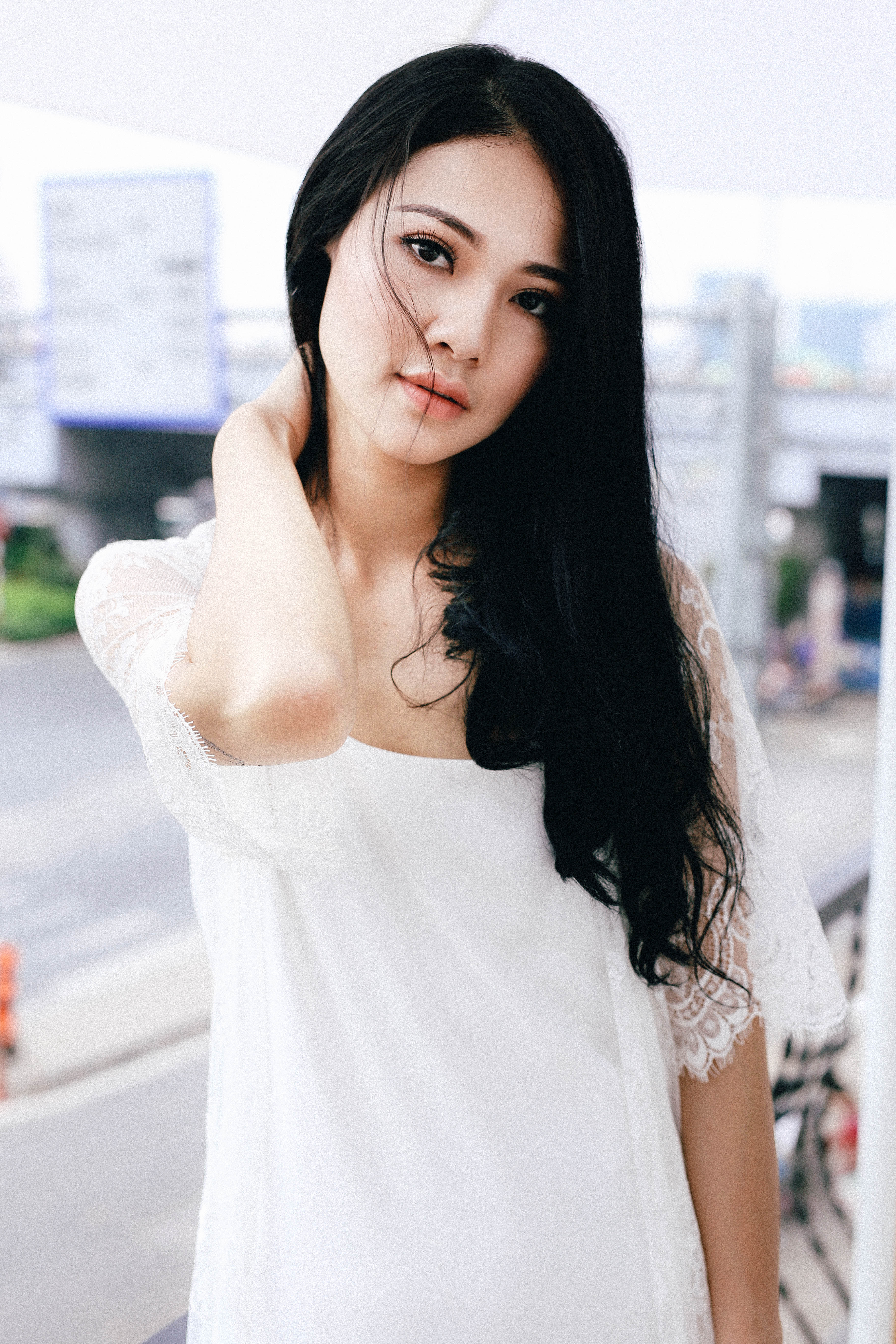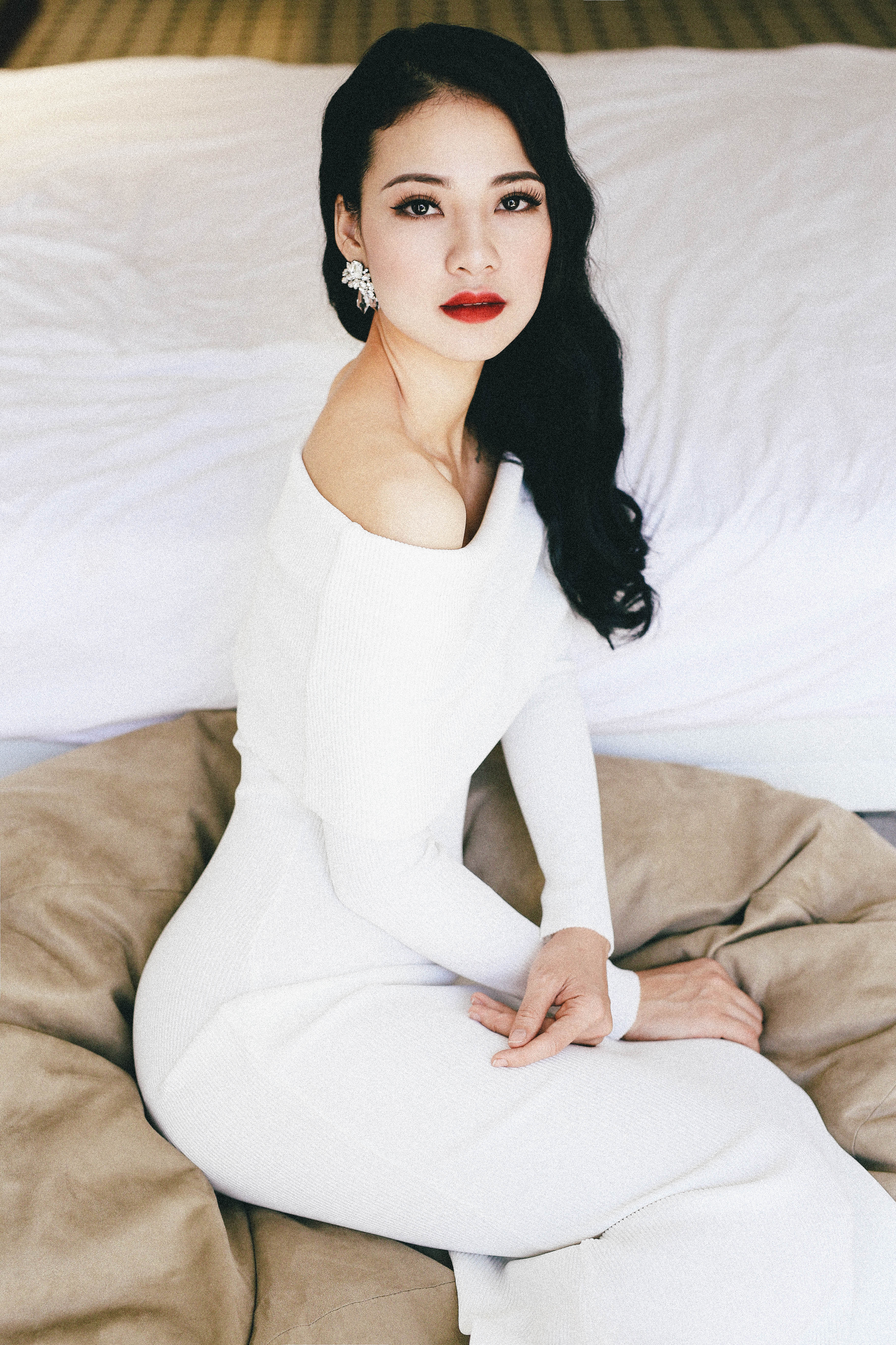 Trần Thị Quỳnh khoe tối đa vẻ đẹp mỏng manh, u buồn hút hồn của mình trong những bộ trang phục với gam màu trắng.