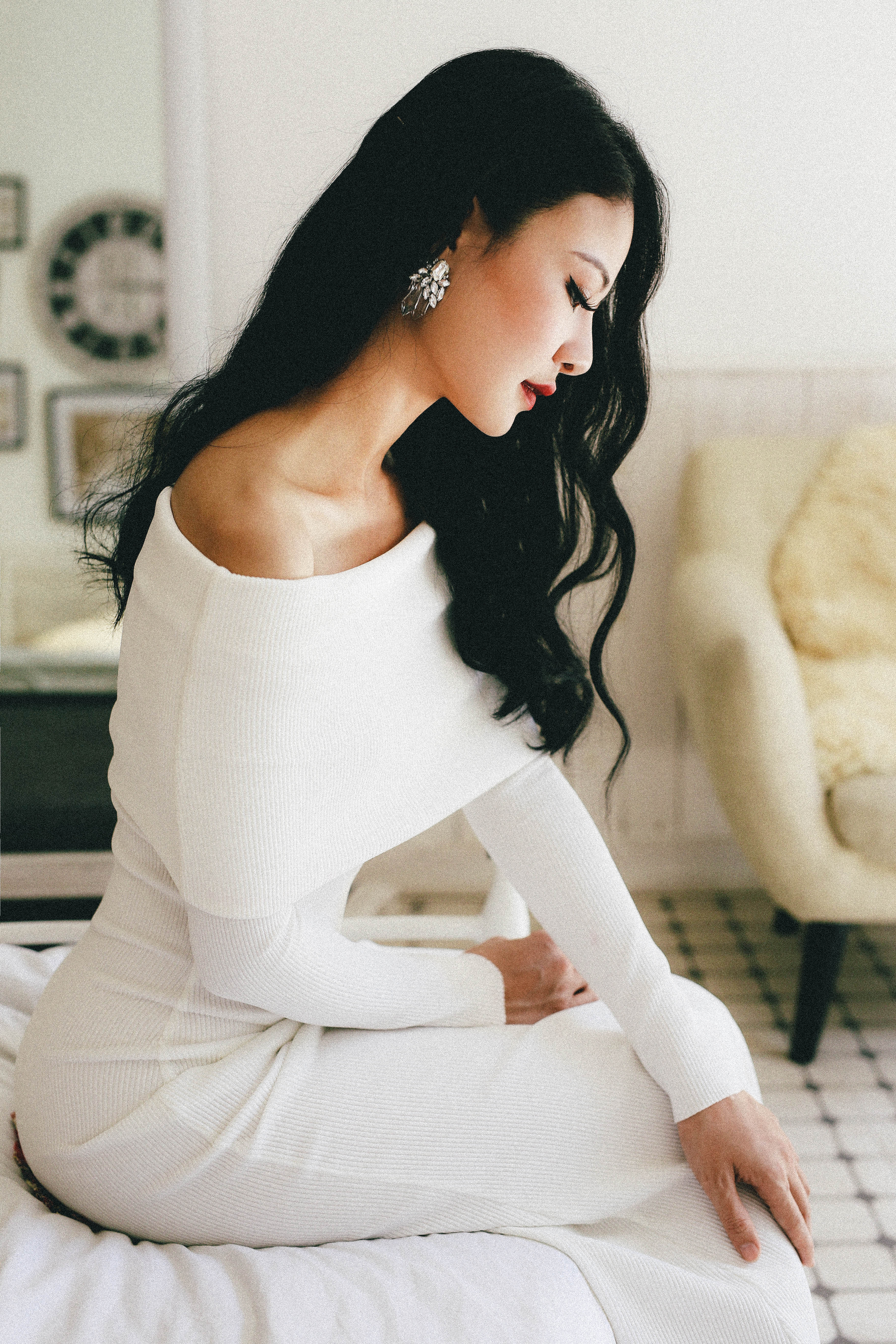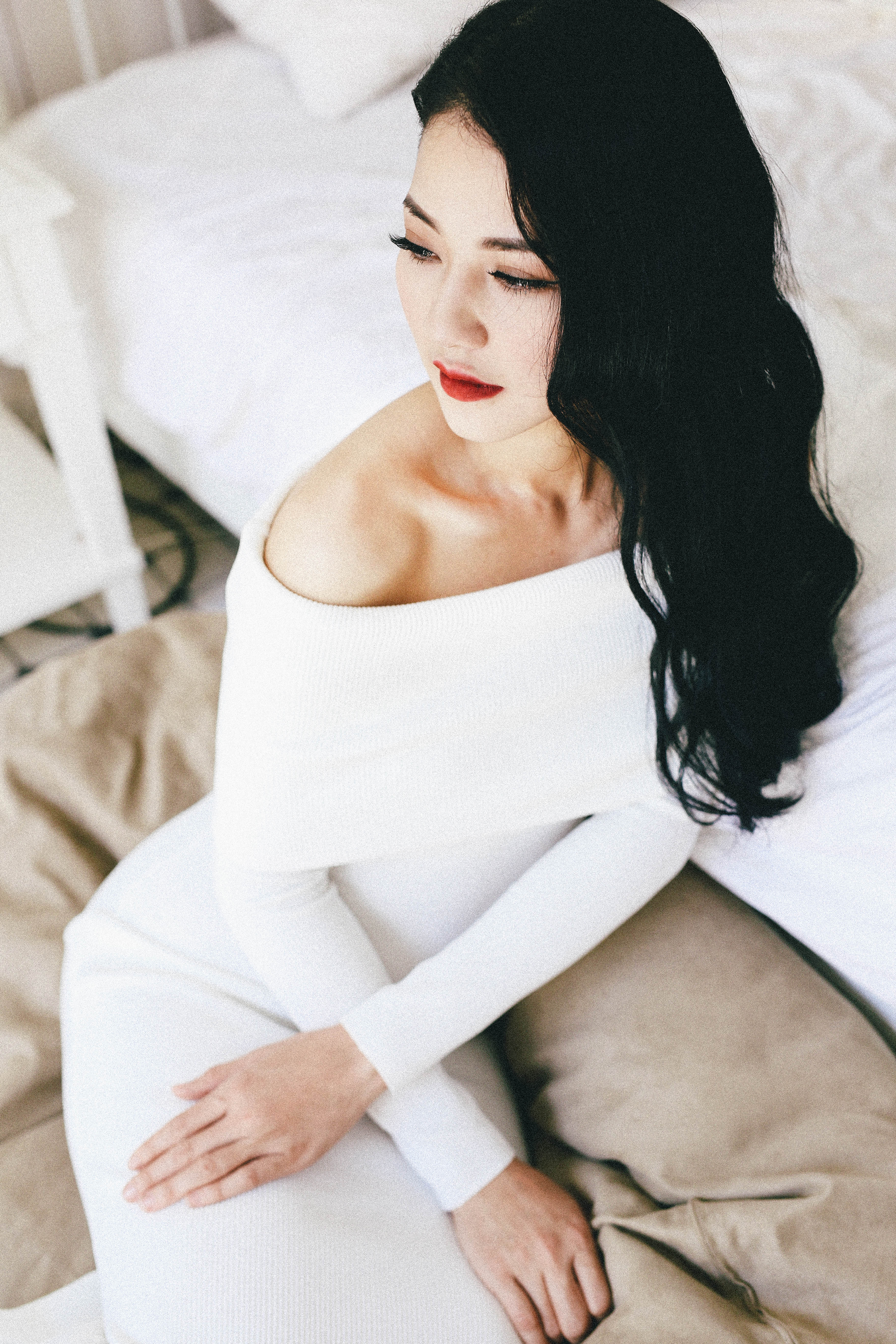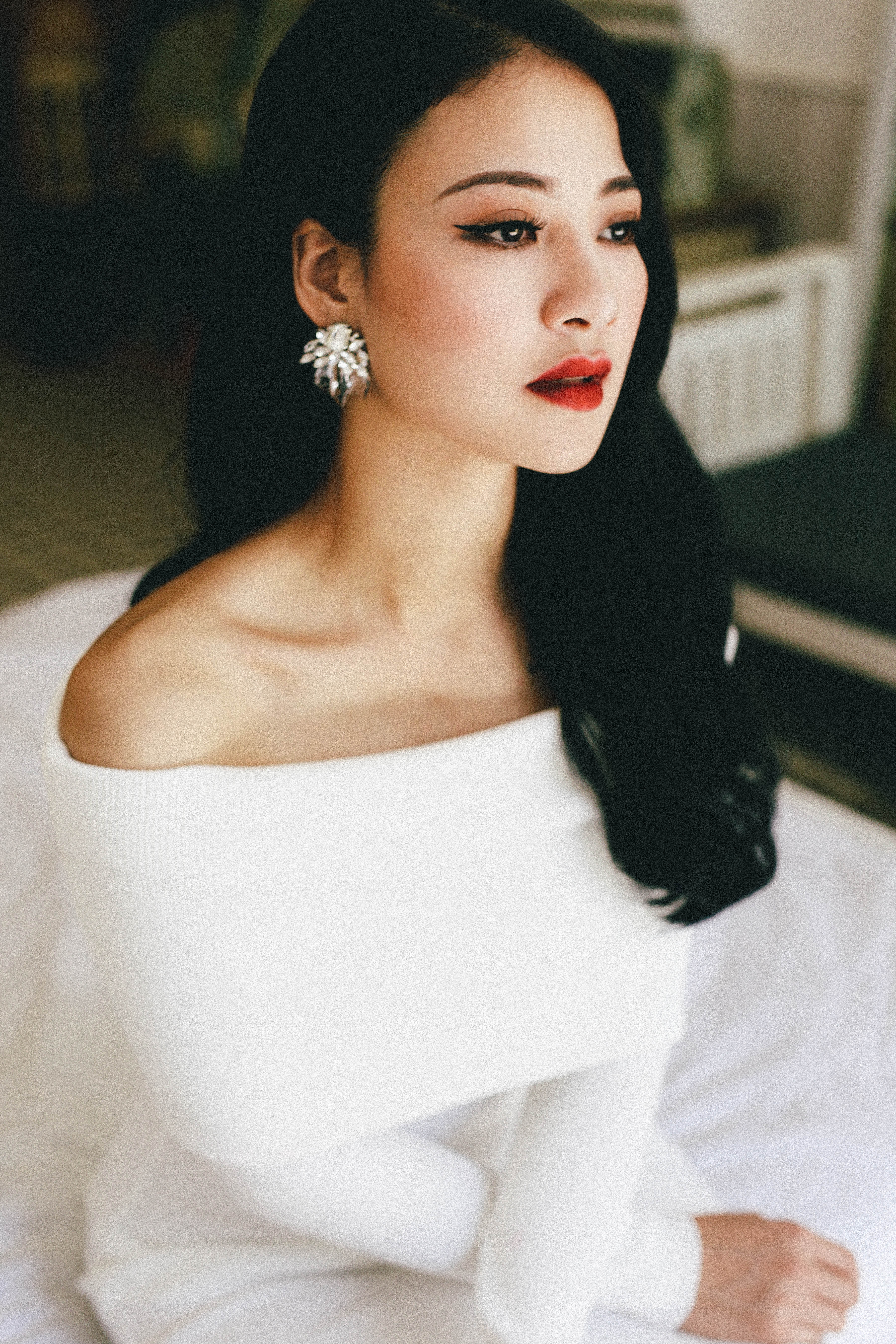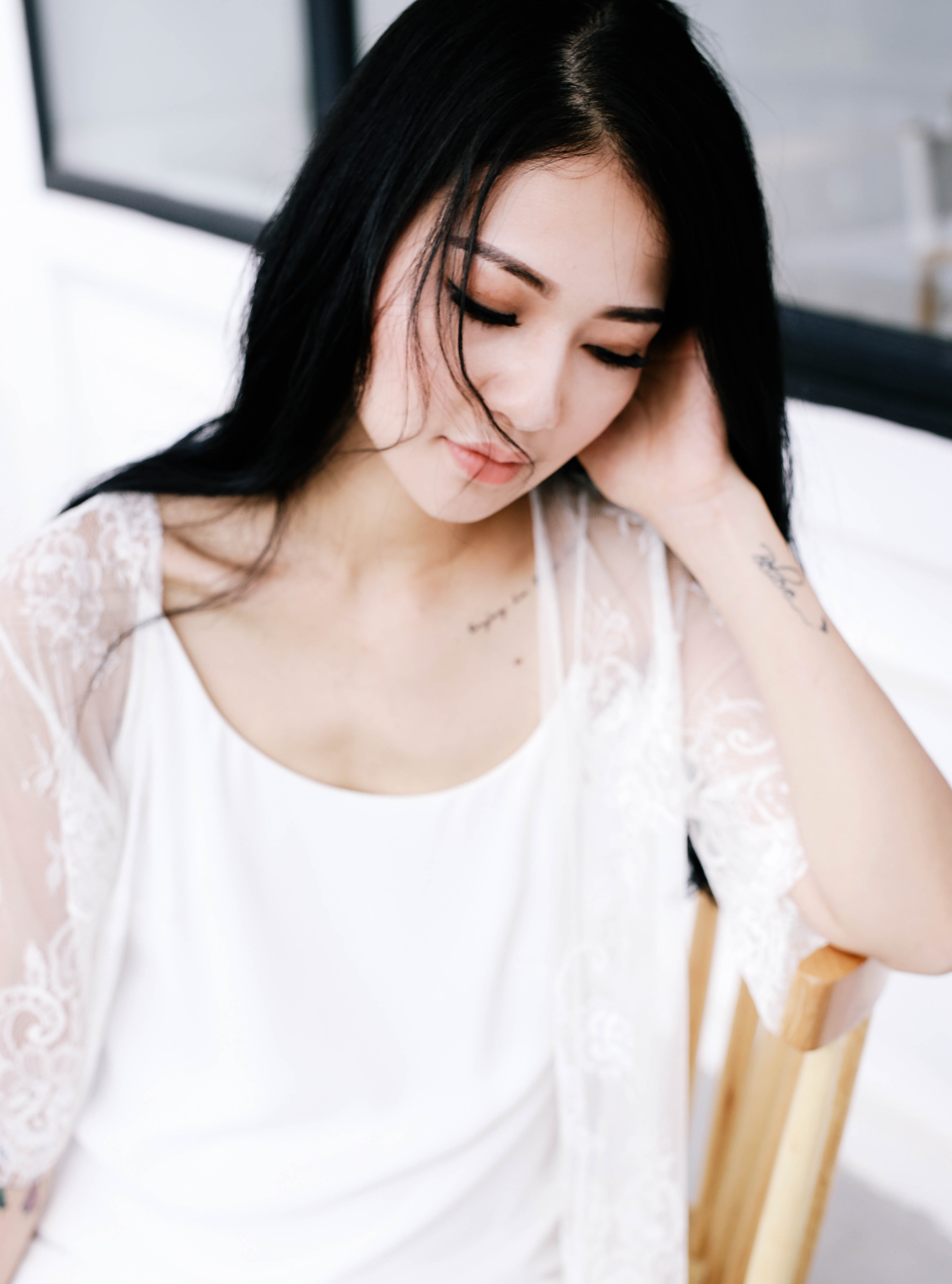 Trần Thị Quỳnh khoe tối đa vẻ đẹp mỏng manh, u buồn hút hồn của mình trong những bộ trang phục với gam màu trắng.