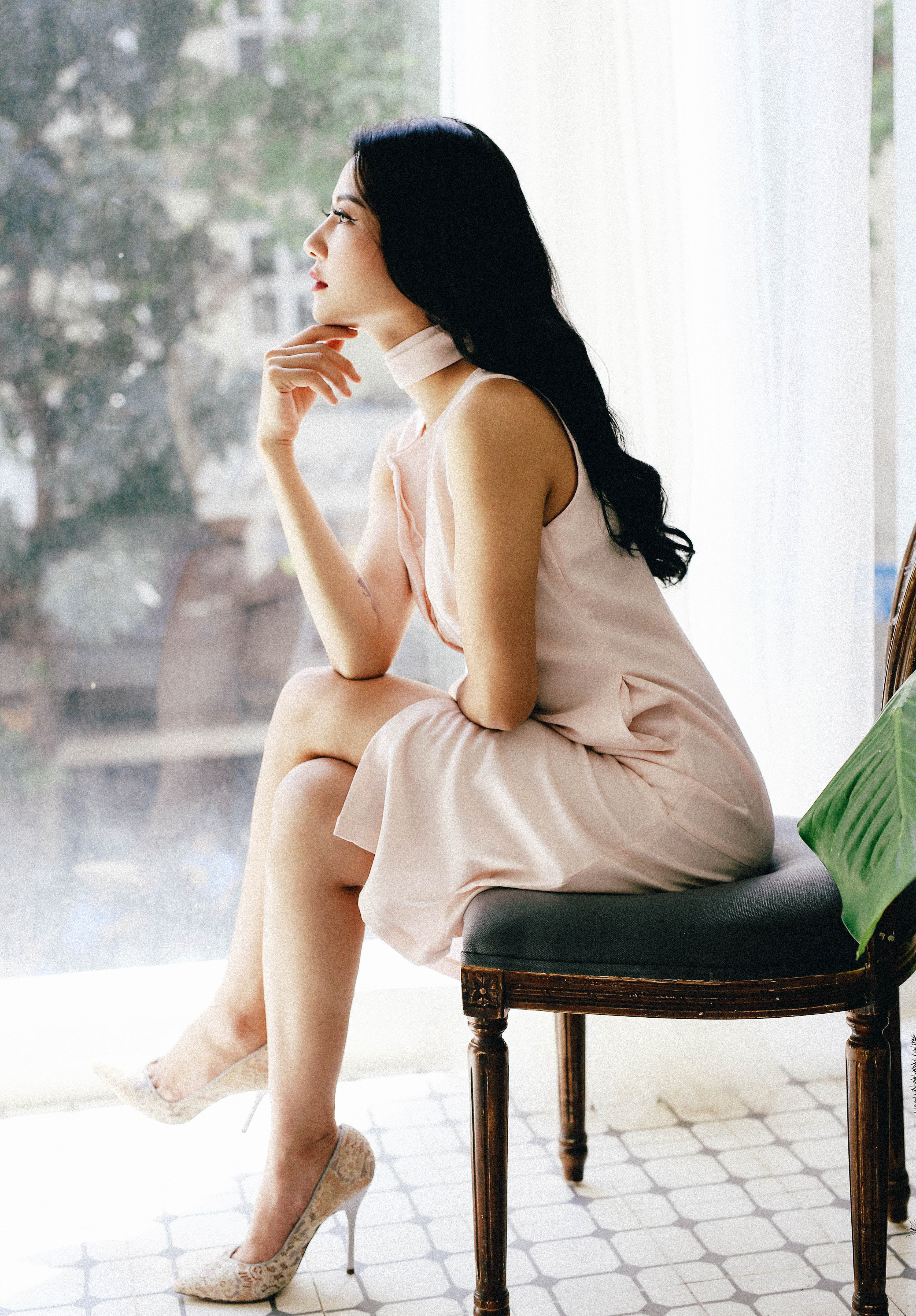 Người đẹp ít chạy theo thời trang, cô thích mặc theo cảm xúc của bản thân và rất chuộng những gam màu nền nã, đơn sắc cùng kiểu đầm suông, qua đó làm nổi bật hơn vẻ đẹp mong manh của mình.