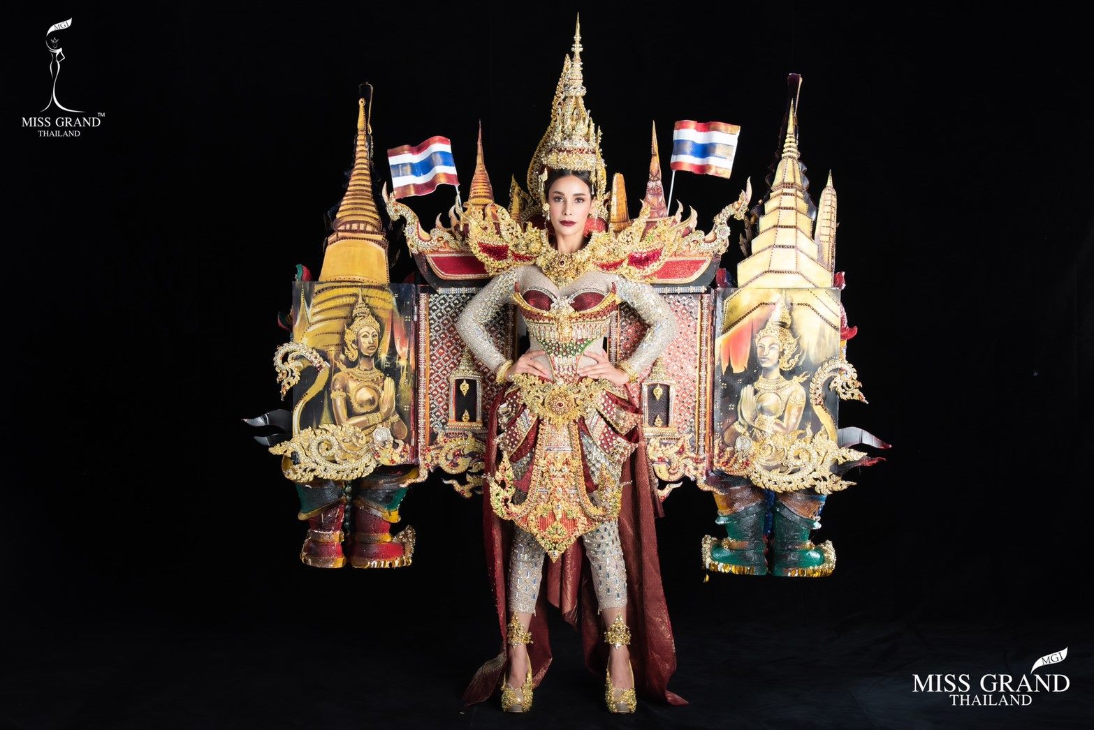 National costume của Miss Grand Thailand 2019 được lấy cảm hứng từ lối kiến trúc đặc trưng của Đền Phật Ngọc nổi tiếng nằm ở thủ đô Bangkok. Đặc biệt, bộ trang phục còn được trạm trổ hoa văn truyền thống tinh xảo. Nhiều chi tiết đặc sắc trên bộ trang phục đều được trang trí bằng những viên đá pha lê và thủy tinh lấp lánh. Bằng sự đầu tư chuyên nghiệp và chu đáo, trang phục dân tộc của đại diện Thái Lan được fan sắc đẹp dự đoán sẽ là một trong những mẫu national costume ấn tượng tại cuộc thi.