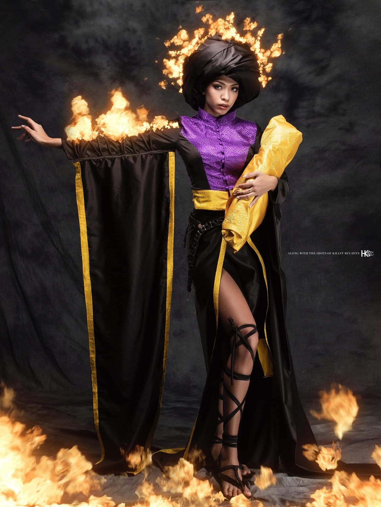 Trang phục dân tộc Miss Grand Myanmar 2019 thể hiện tình yêu phi thường của người mẹ - người phụ nữ dành cho con cái. Trọng trách của họ không chỉ đơn thuần là sinh con, mà còn có thể đứng lên chiến đấu vì quyền lợi của mình, đấu tranh và hy sinh để vì hạnh phúc và hòa bình. National costume của đại diện Myanmar được đánh giá là vô cùng ấn tượng vì sát với tiêu chí của Hoa hậu Hòa bình Quốc tế và có giá trị nhân văn vô cùng sâu sắc.