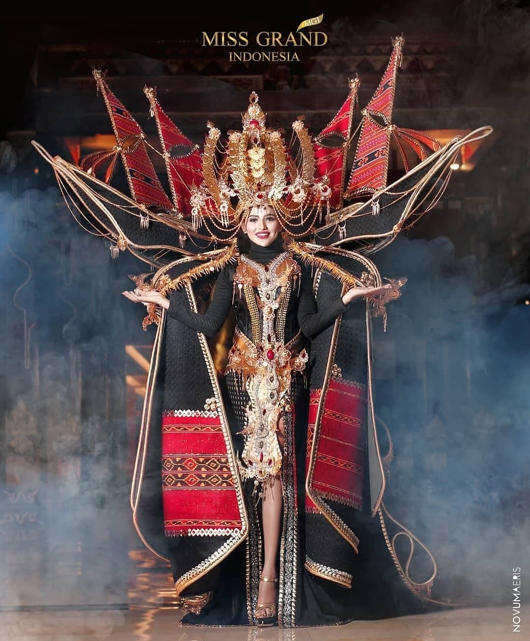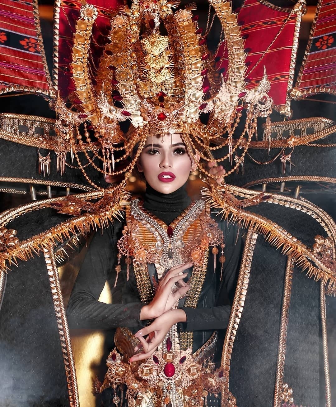 Nhiều năm liên tiếp, các đại diện Indonesia đều lọt top cao của phần thi National Costume. Thế nên, với mẫu thiết kế được trạm trổ công phu cùng những đường nét hoa văn tinh tế, sắc xảo, người đẹp tiếp tục được kỳ vọng sẽ tạo thêm kỳ tích cho nước nhà.