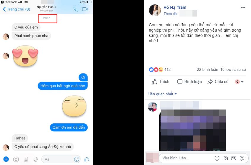 Mới đây trên trang cá nhân của Võ Hạ Trâm đã chia sẻ đoạn chat cùng với Hòa Minzy. Võ Hạ Trâm hài hước nói rằng “Con em mình nó đáng yêu thế mà cứ mắc cái nghiệp thị phi. Thôi, hãy cứ đáng yêu và tâm trong sáng, mọi thứ sẽ tốt dần theo thời gian… em chị nhé!”. Nhiều người nhận ra rằng Hòa Minzy lại chúc thêm Võ Hạ Trâm thêm một lần nữa. Có lẽ sau nhiều scandal “vạ miệng”, Hòa Minzy đã biết cách tinh ý hơn trong việc xử lý.