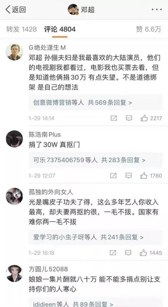 Bởi vì trong danh sách minh tinh quyên góp, vợ chồng Đặng Siêu, Tôn Lệ chỉ quyên 300 ngàn NDT (1 tỷ đồng), trong khi đó những cặp nghệ sỹ khác như Huỳnh Hiểu Minh - Angelababy và Ngô Kinh - Tạ Nam đều quyên 1 triệu NDT (3,4 tỷ đồng). Cũng chính vì vậy mà không ít người cho rằng Đặng Siêu - Tôn Lệ quá keo kiệt. Vào thời điểm đó, hàng loạt bình luận lên tiếng chê bai, chỉ trích cặp đôi nổi tiếng nhưng trước giờ Đặng Siêu, Tôn Lệ chưa từng lên tiếng thanh minh cho bản thân mình.