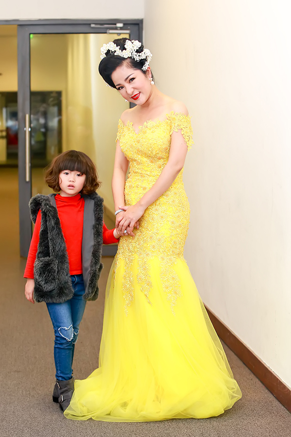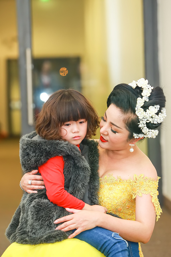 Sở dĩ bé Nguyệt Cát có mặt “chạy sô” cùng mẹ bởi vì cô bé đang trong kỳ nghỉ lễ nên Thúy Nga cũng tranh thủ đưa con về thăm bà ngoại và gia đình.