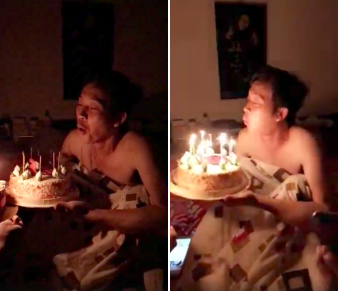 Trong clip dài 6 giây, có lẽ vì bên cạnh người thân nên Hoài Linh tỏ ra cực kỳ thoải mái, giản dị. Danh hài cởi trần, vẫn nằm trong chăn ấm và ra sức thổi nến trong tình trạng “đầu bù tóc rối”. Khoảnh khắc đời thường của “ông hoàng gameshow” khi đón sinh nhật cùng con trai khiến nhiều người không khỏi thích thú.