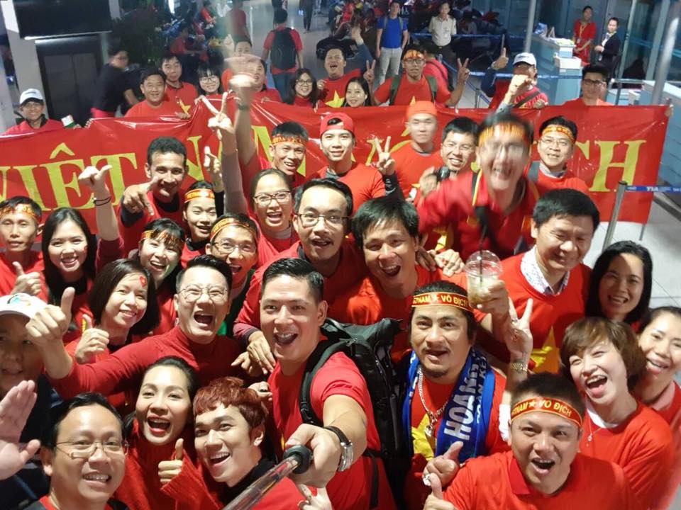 Sân bay Tân Sơn Nhất phủ kín một màu đỏ đến từ CĐV Việt Nam.